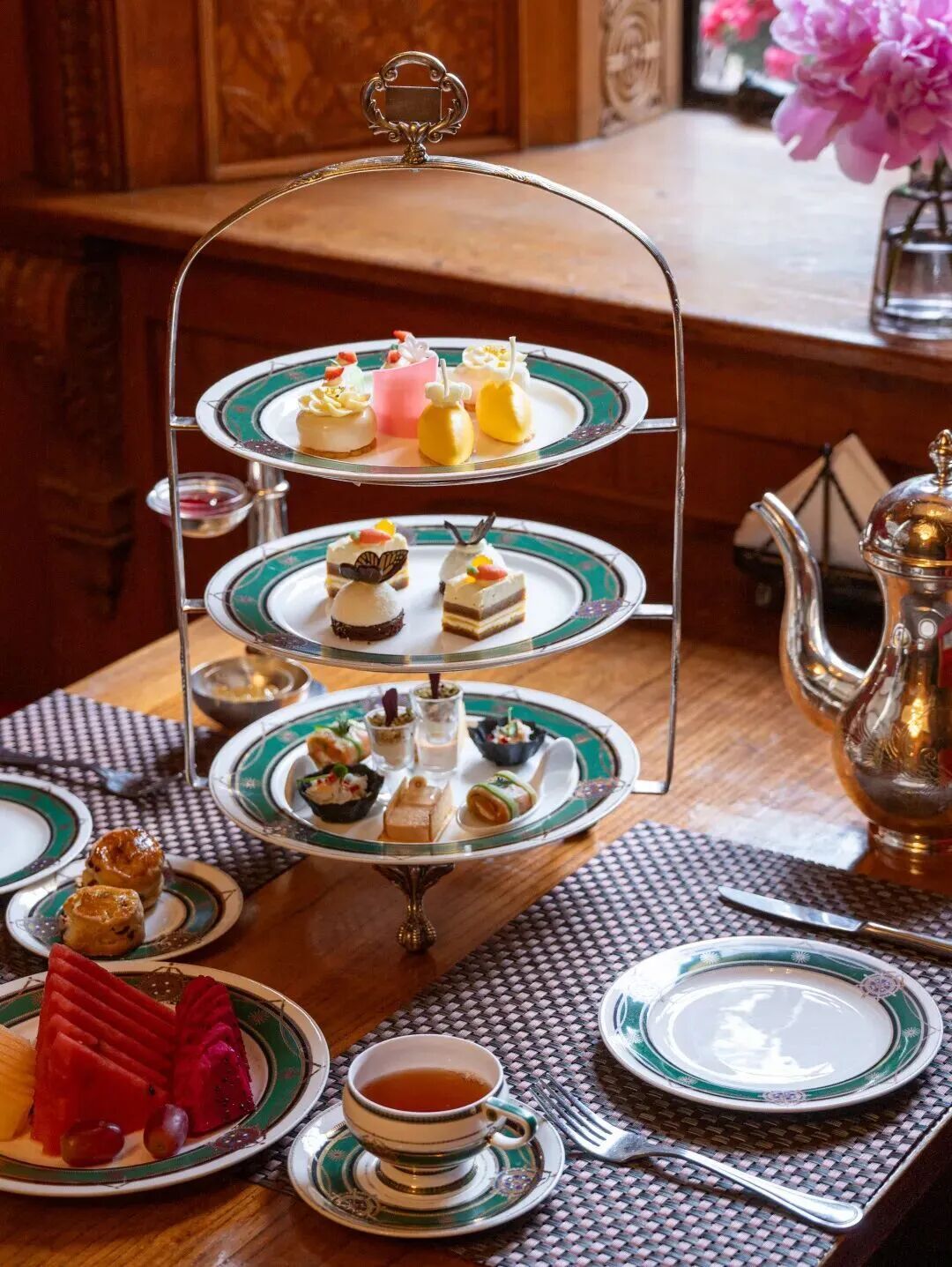 马勒别墅饭店的"英式下午茶"还原英国维多利亚传统:三层点心架摆放三明治、司康、蛋糕和水果塔。西点师傅不断推陈出新,降低甜度,更合亚洲人口味。配以斯里兰卡锡兰红茶,成为偷闲半日的最佳选择。