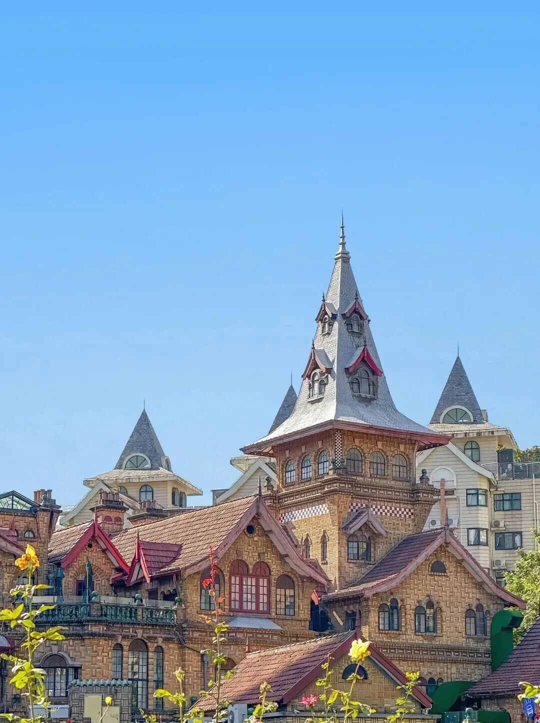马勒别墅三个立面各具特色:东立面如欧洲古堡,南立面呈现斯堪的纳维亚风情,北面则展现哥特式风格。6座尖顶陡直棱翘,彩色玻璃在阳光下格外迷人。