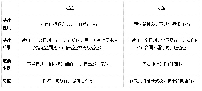 答:定金是法定的担保方式,如果发生违约,可以用定金作为违约惩罚。订金则是预付款,在合同正式履行时可以抵作总价款,支付剩余价款即可,更多地体现预约和便于合同履行的性质。