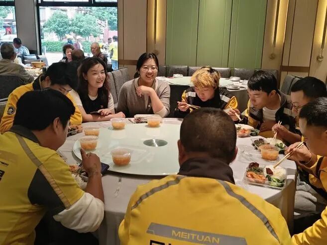 针对骑手们常说的“吃饭难、吃不好”问题,党支部反复对接街区老牌餐厅,贴心推出“暖心餐”:先邀请骑手们试吃并征求意见,餐厅根据不同口味精心搭配荤素,让大家品尝到“家的温暖”;后续又持续收集反馈,不断优化“骑手食堂”,以专属优惠解决骑手们的吃饭难题。 寒冬时节,党支部携手社区精心筹备“社区元宵喜乐颂邻里和融情意浓”活动,骑手们与社区居民、党员一起动手包汤圆、猜灯谜,在体验传统民俗的过程中,拉近了与社区的距离,更增强了归属感。开春时节,街区党支部特地为女骑手们举办了“暖‘新’迎春”活动,与她们围坐一起,畅谈权益保障与家庭教育的点点滴滴,成为了她们心中贴心的“娘家人”。盛夏之际,我们连续举办了三场“夏送清凉”活动。不仅为骑手们送去清凉物资,还特邀专业机构为他们进行肩颈调理,做到了从“物资补给”到“身心呵护”的全方位、细致入微的关怀。中秋佳节,党支部携手美团总工会,于上坤城市广场精心策划了一场别开生面的民俗体验活动;秋分时节,党支部还邀请骑手观看《731》,先辈们不屈的抗争精神,也让大家在光影中感悟初心,为骑手们注入强大精神力量。 在骑士节上,党支部敏锐地察觉到了残障骑手小苏独居打拼的艰辛与不易,随即为他量身定制了一套贴心的帮扶方案:送去合身的衣物和鞋子,让他感受到温暖与关怀;每月定期回访,了解他的跑单情况,为他排忧解难;并细心检查他的身体状况,确保他的健康与安全。这份温暖让小苏在异乡找到家的感觉,如今他主动加入志愿服务,从“受助者”变成了“回馈者”。