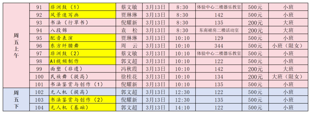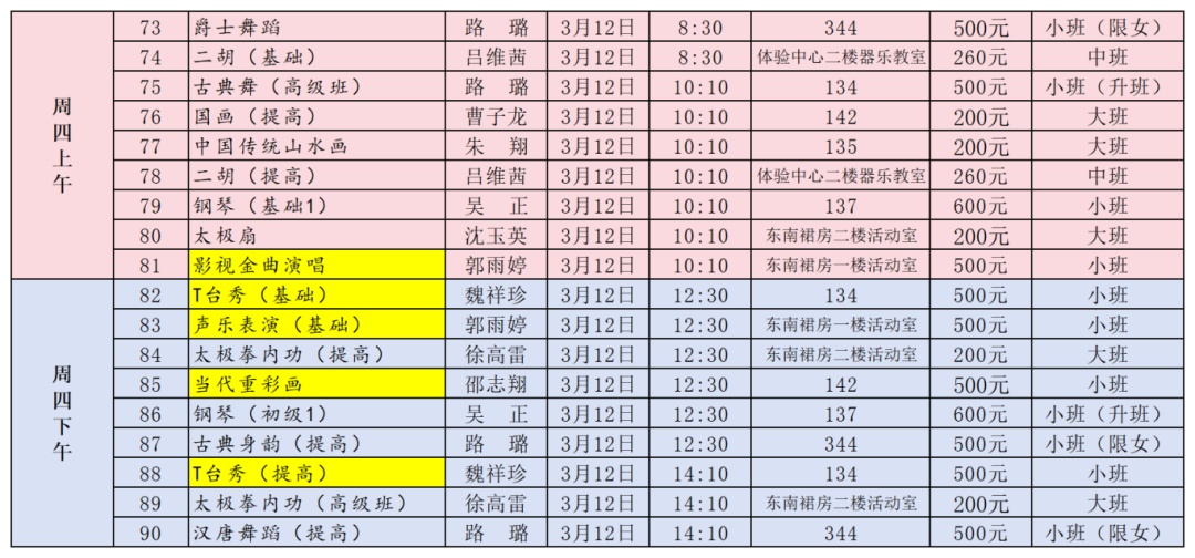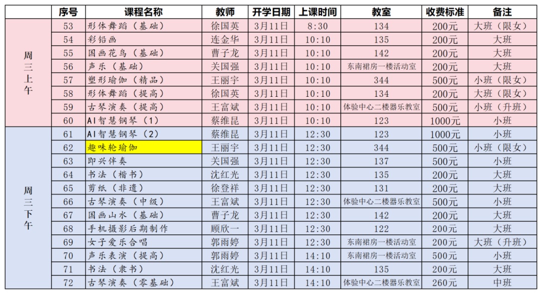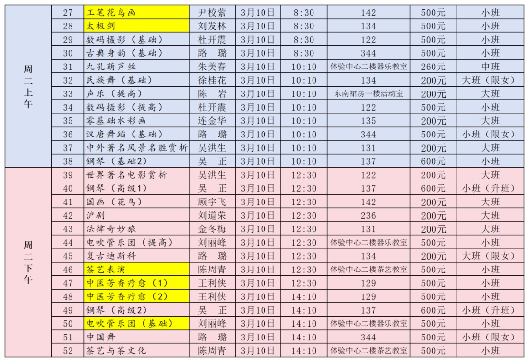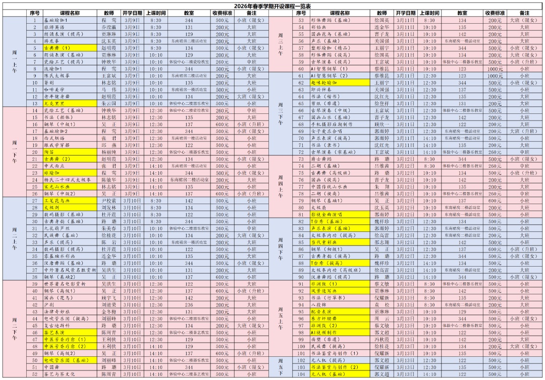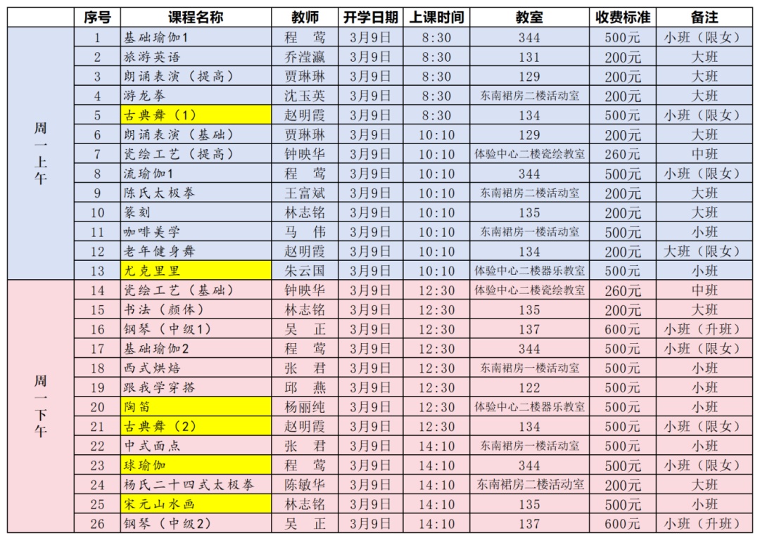 (点击图片可查看大图,黄色标注课程为新开课程)