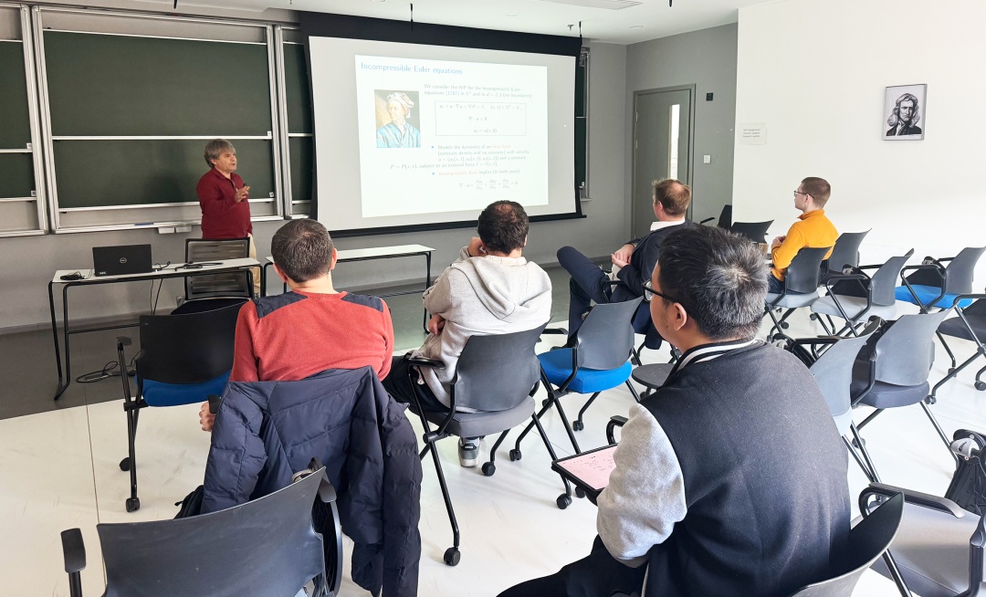 研讨会内容深入,覆盖了该问题的多个关键方面。Córdoba教授首先带领师生们回顾了两大方程式的基本框架,从而就该领域的核心进展及研究成果展开阐释。“方程形式虽然简洁,但蕴含的数学性质极其复杂。”Córdoba教授表示,“Navier-Stokes方程解的存在性与光滑性问题,已被美国克莱数学研究所列为七大‘千禧年大奖难题’之一。我们也希望通过研讨会的形式,聆听来自中国青年的思考与探索。”