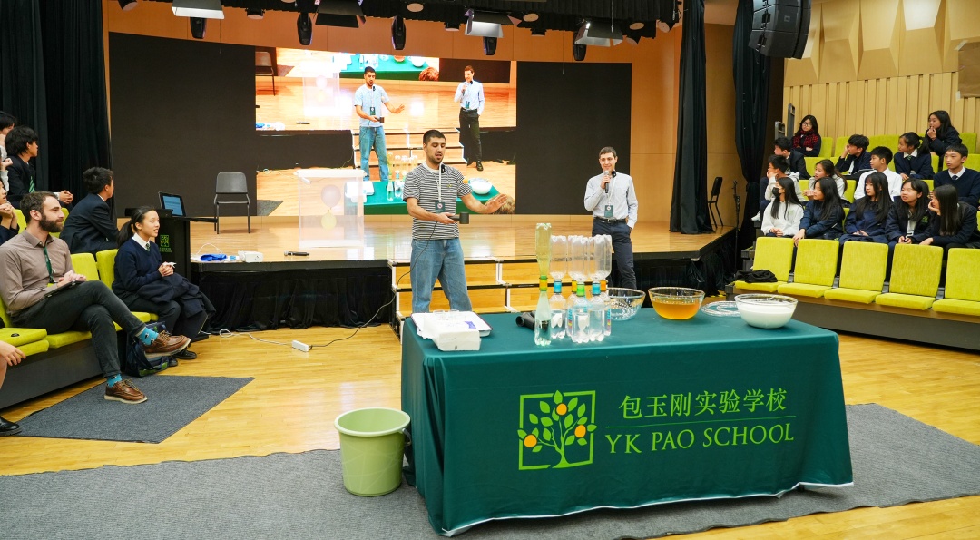 为更贴近学生们的年龄层级,中学科学工作坊以“流体中的奇妙世界”为主题展开,通过丰富的演示与生动的讲解,将日常生活中常见的现象与物理、数学的深层原理紧密联系。学生们在课堂中探索了一系列引人入胜的科学问题,还通过亲自动手参与,深入理解实验背后涉及的流体力学、压力、升力与运动转变等核心原理。“实验的道具就是我们日常可见的吹风机、塑料瓶,自己也能复刻,很有意思,还学到了知识。”一位学生感慨地说。