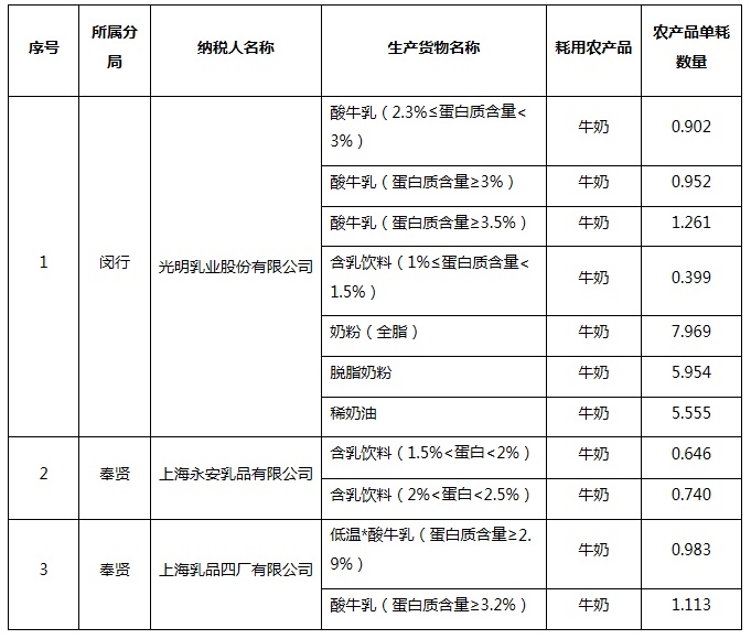 附件:本市下发和调整部分企业农产品增值税进项税额核定扣除标准汇总表