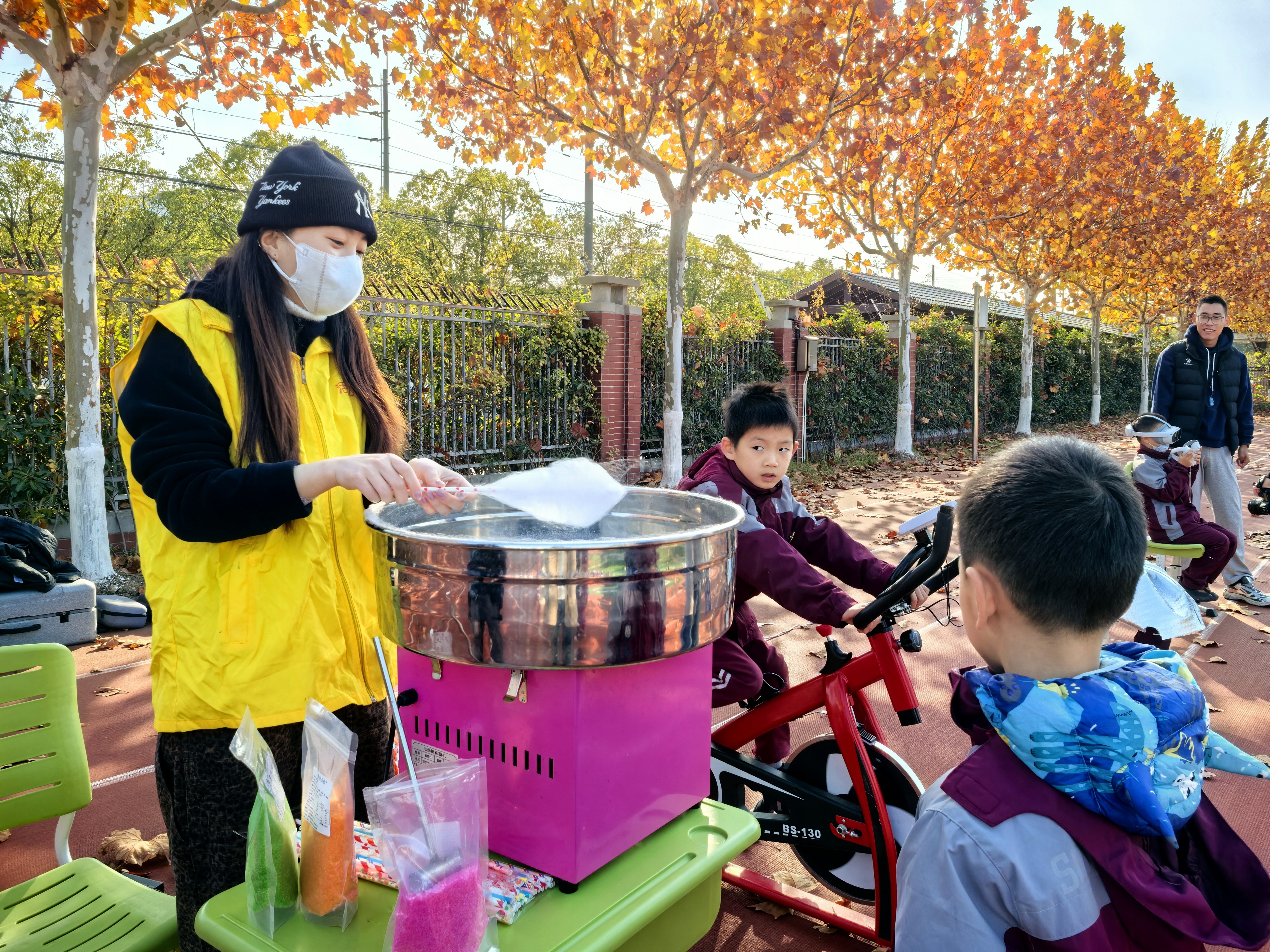 对于低年级的孩子们而言,最大的快乐莫过于游戏和美食了。若有既能玩又能吃的项目,自然更为抢手。记者在现场看到,单车棉花糖体验项目人气十足,一(4)班学生马珞甯在试玩后兴奋地说:“脚踩单车奋力蹬,骑着骑着就能吃到棉花糖,太棒了!每一口都是满满的成就感。”