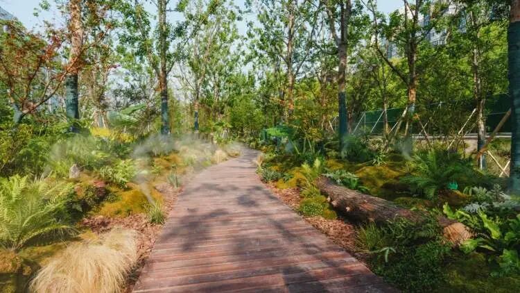 这条约2公里的生境漫游路线,是一次穿越都市核心区的沉浸式自然探索。沿途将穿梭于由本土植物构建的多样化生境:从模拟自然山谷的苔藓阴生环境,到吸引传粉昆虫的杜鹃花溪;从提供食源的可食地景,到滋养两栖类与微生物的雾森峡谷。这里不仅是植物的家园,更是鸟类、昆虫与小动物的栖息走廊。