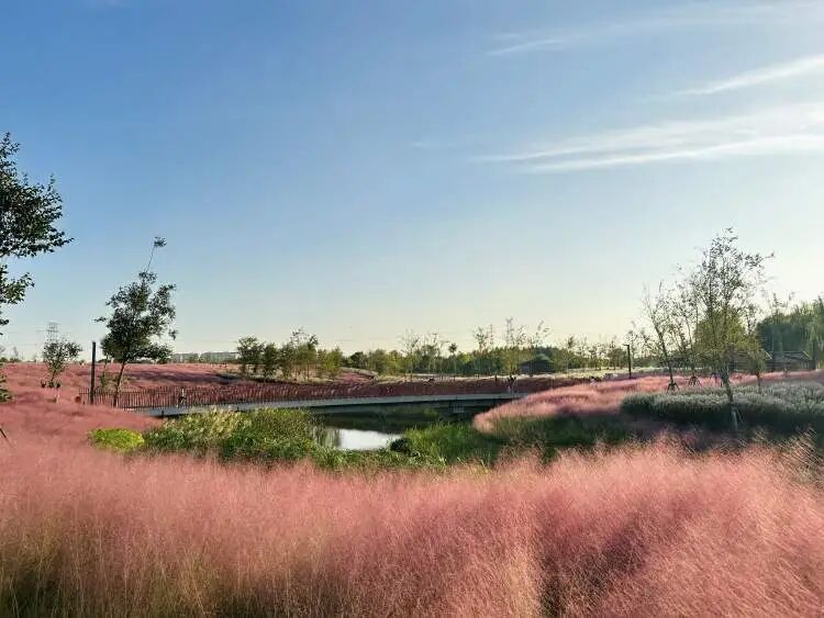 这条约6公里的生境步行路线从金海湿地公园北门游客服务中心启程,串联起茅草亭、金海湿地科普馆、再野化区域、观赏草展示区五个生态打卡点,最终回归起点,形成一个完整的生态循环。