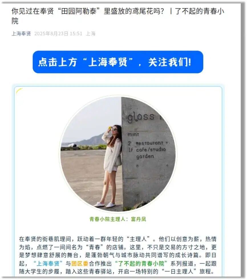 借助市、区级主流媒体,帮助创客点位提高影响力和知名度。配合团区委推出“了不起的青春小院”系列报道首期,阅读量破万。