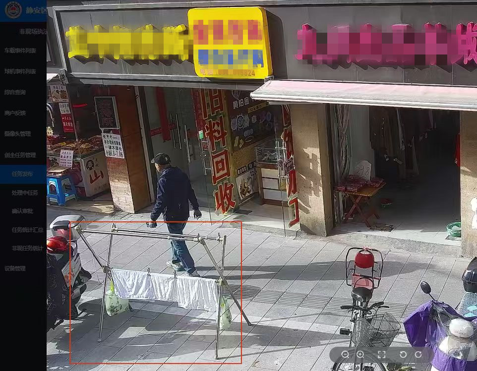 过去,城管队员每天要在街上走来走去巡查,看到哪里晾着衣服、哪里堆着货物,就得一家家敲门提醒。可常常是这头刚收,那头又摆出来,管理起来特别费劲。如今,静安区部分街道综合行政执法队陆续用上了“非现场执法”新方法——让智能探头当上了“24小时管家”。