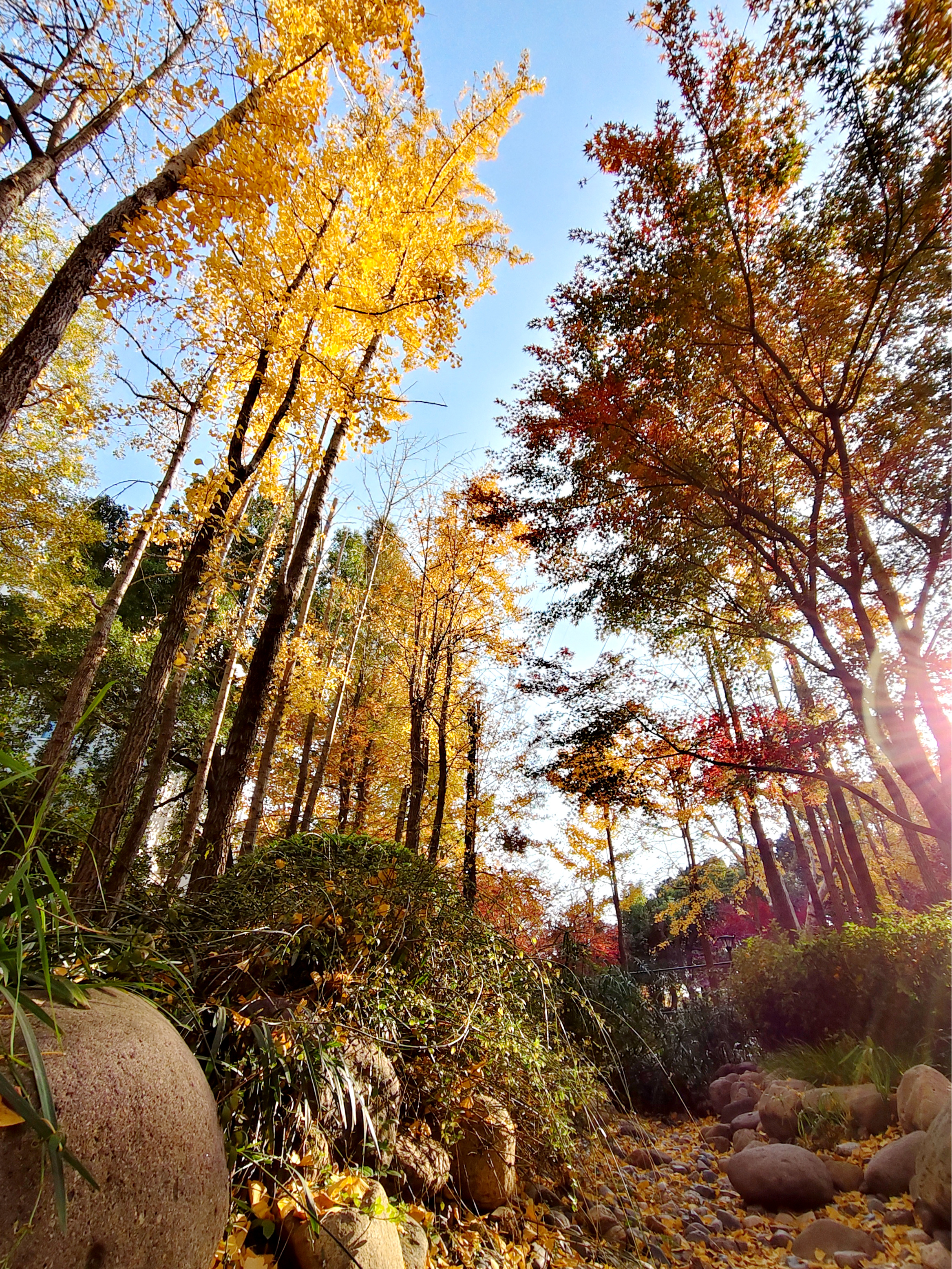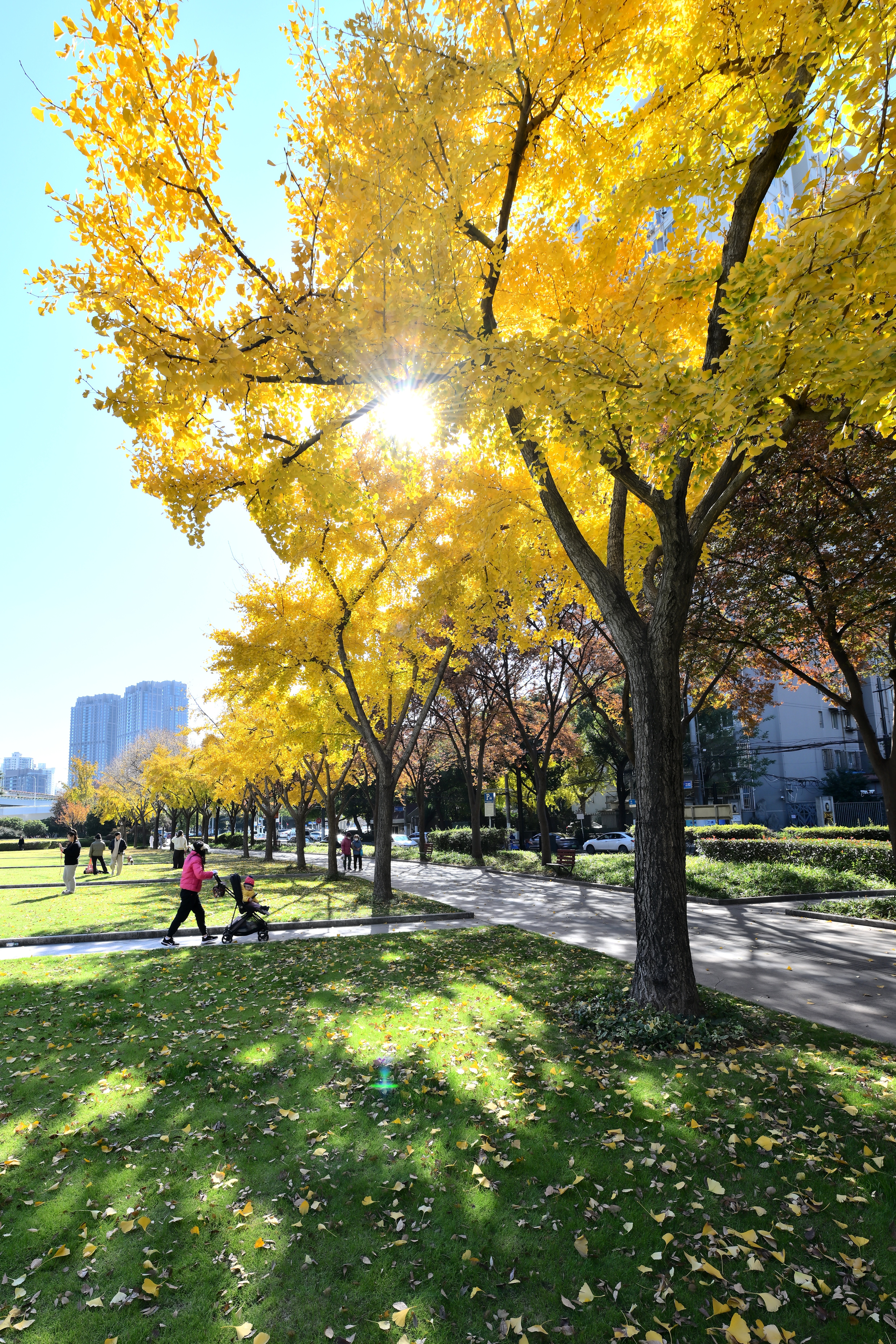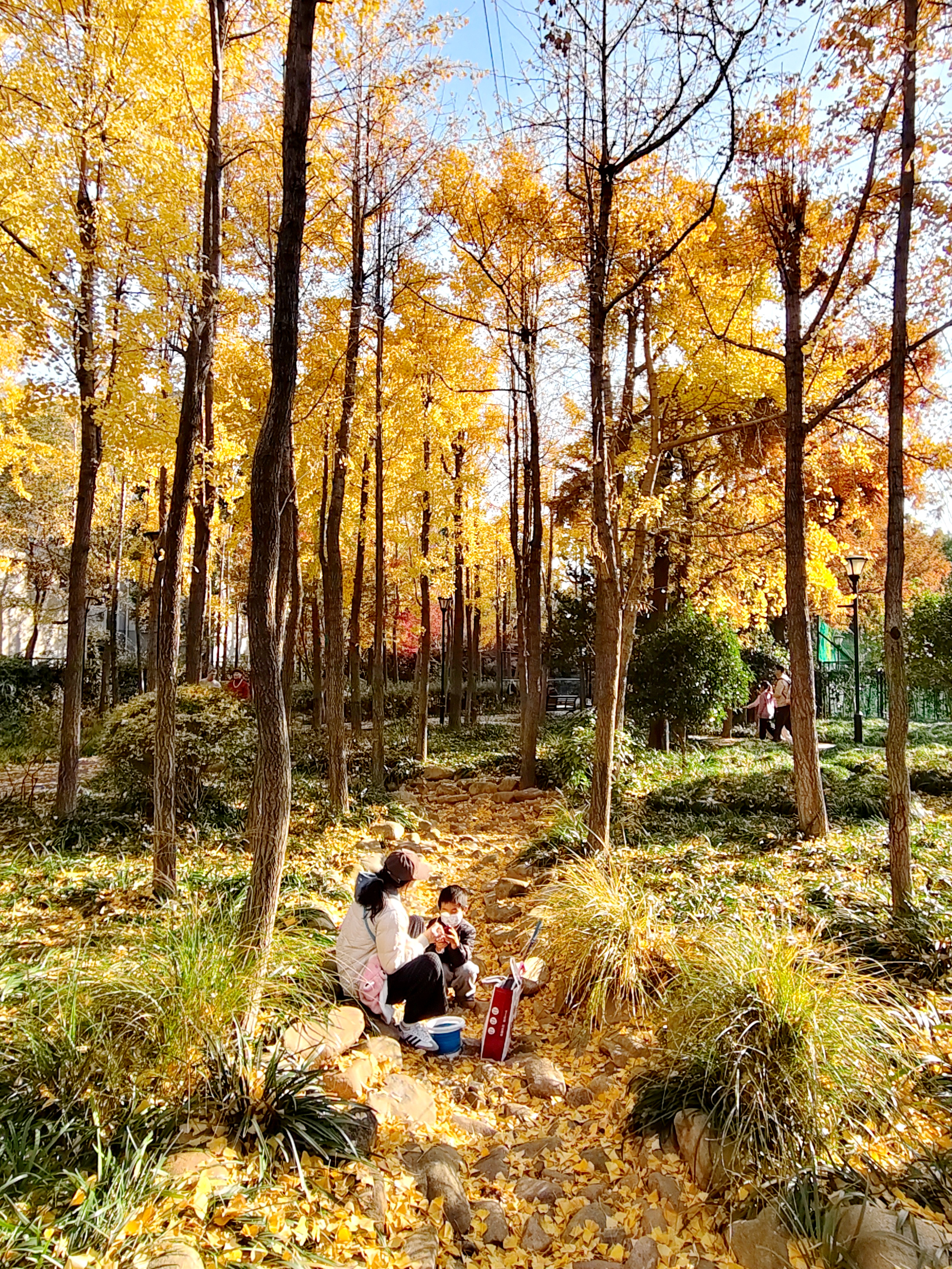这里的银杏林更显野趣。午后阳光斜照,林间通透如琉璃世界。孩童奔跑着追逐落叶,长者闲坐长椅眯眼小憩——四季在此更迭,而金秋的余韵,正以最温暖的方式渗入初冬的日常。