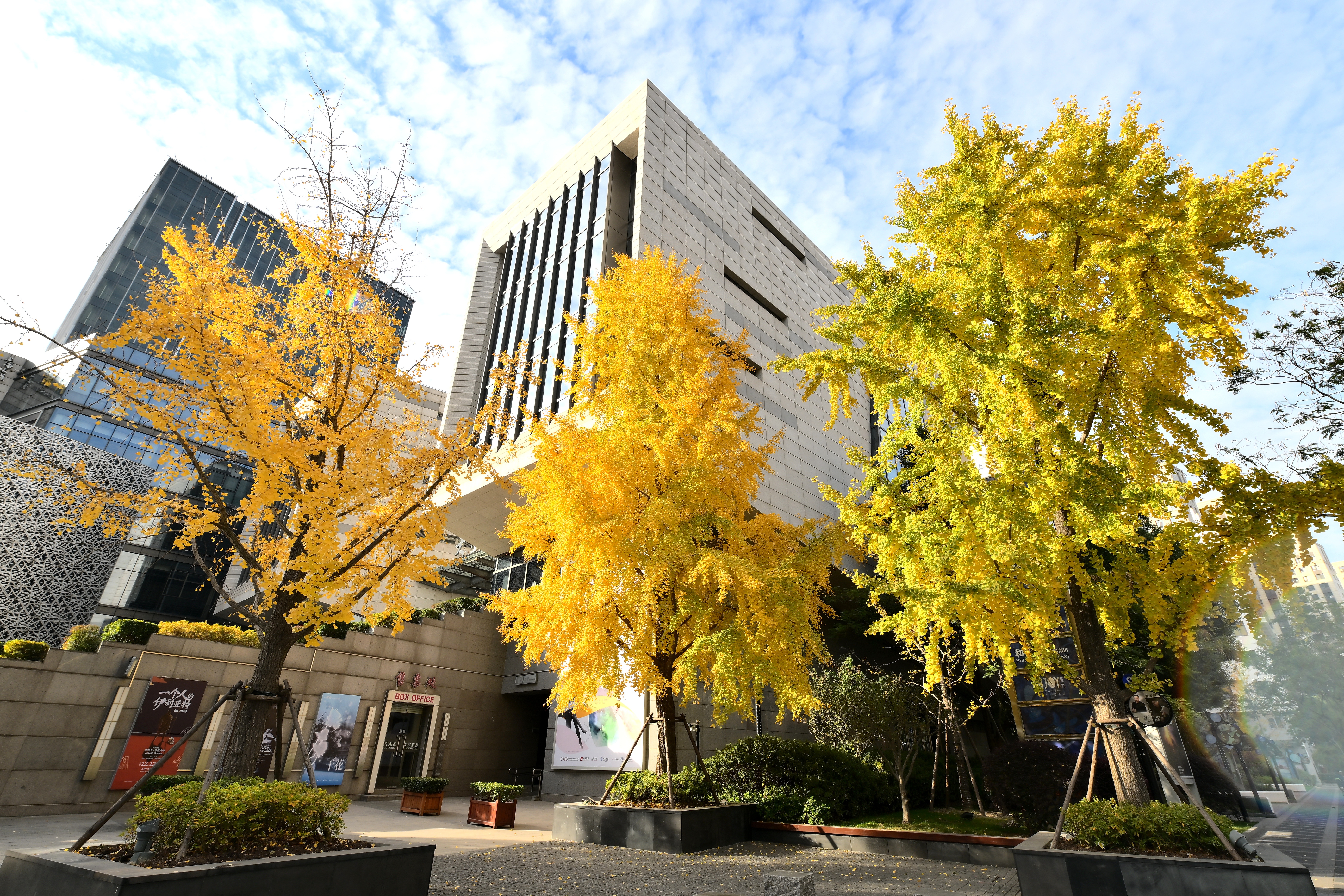 艺术殿堂前,银杏以最隆重的仪态登场。玻璃幕墙映出金色的树影,古典与现代在光影中交融。偶有行人驻足,或拾叶端详,或举机拍摄——此刻,每个人都是这场自然戏剧的观众,也是主角。