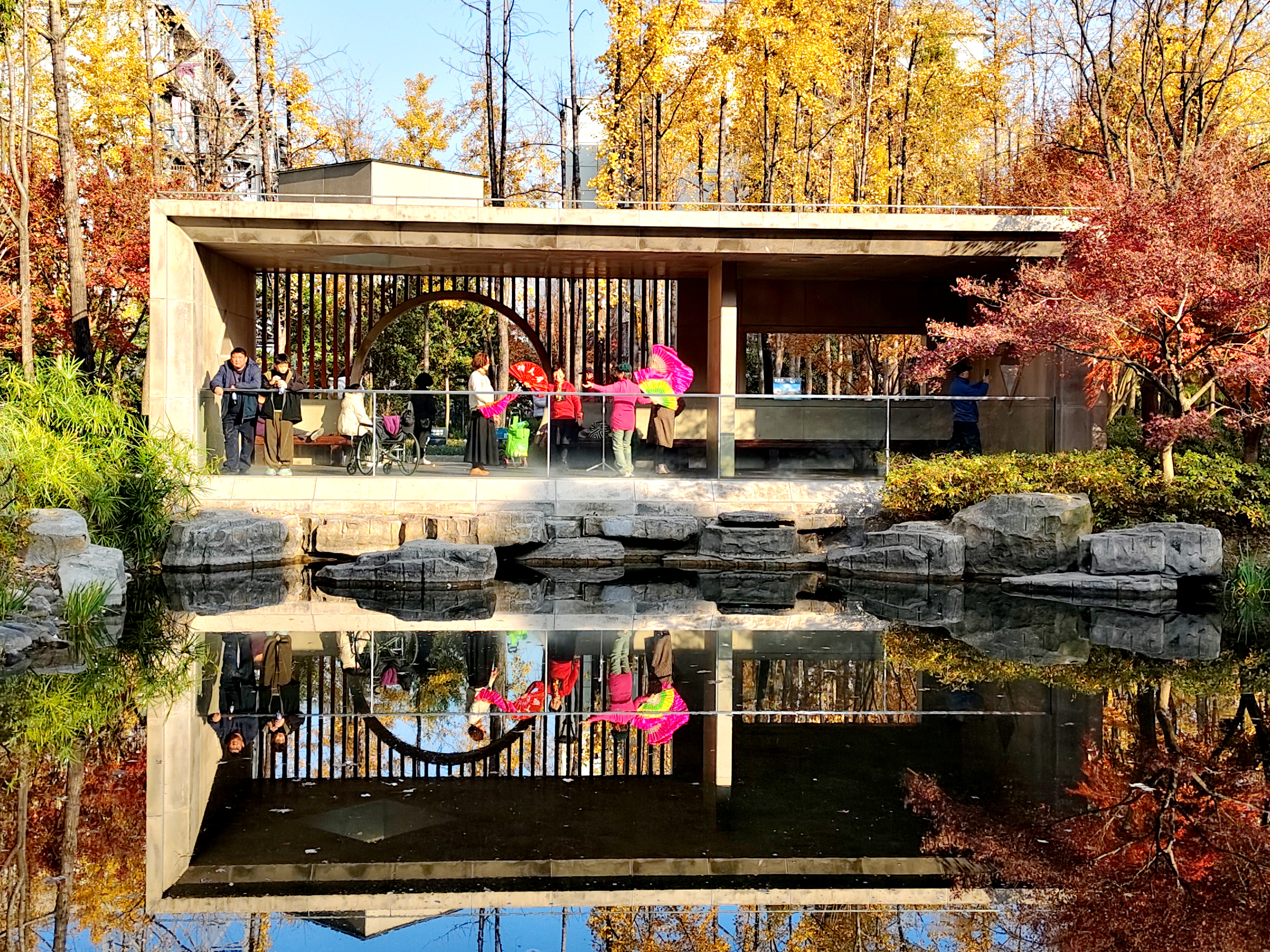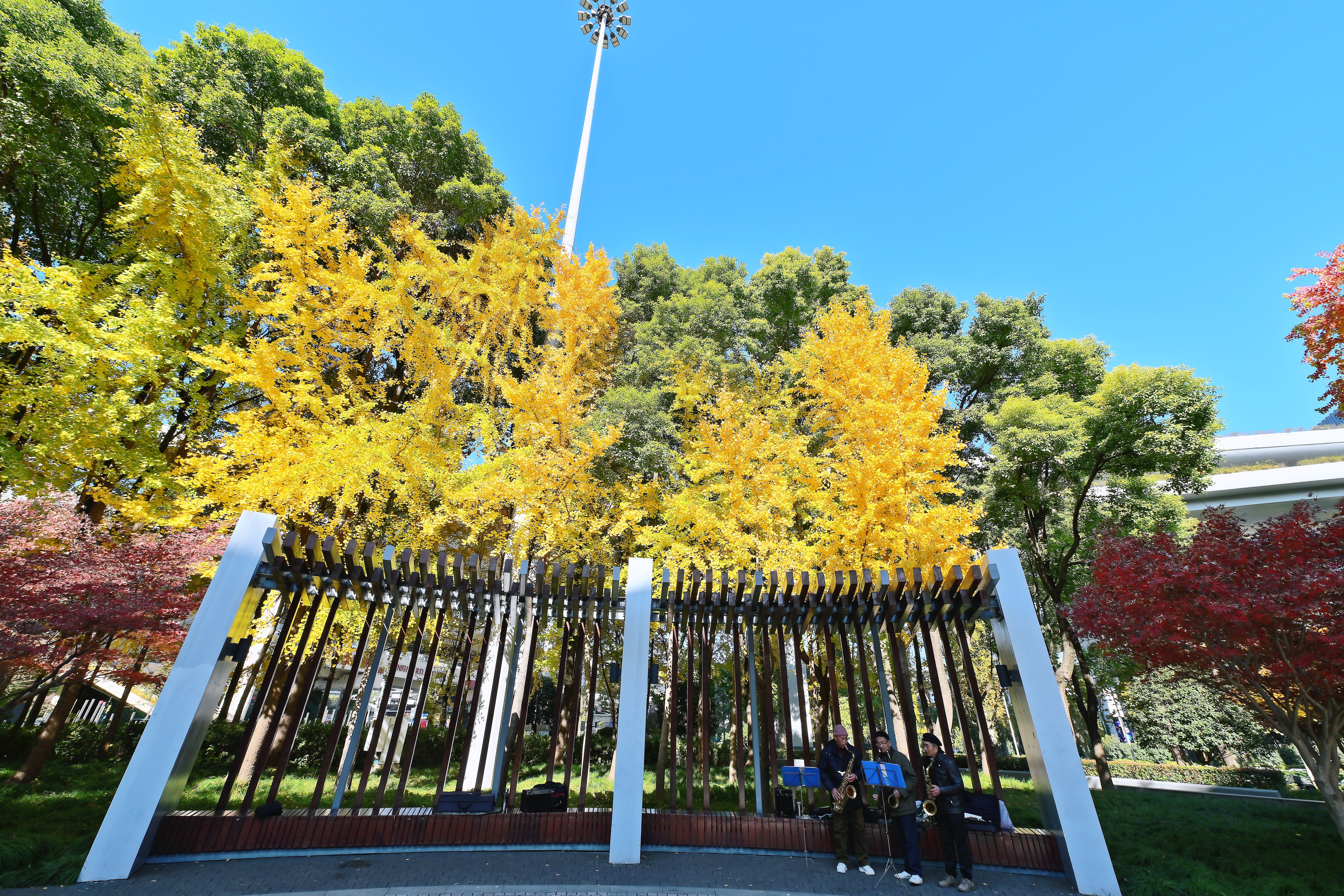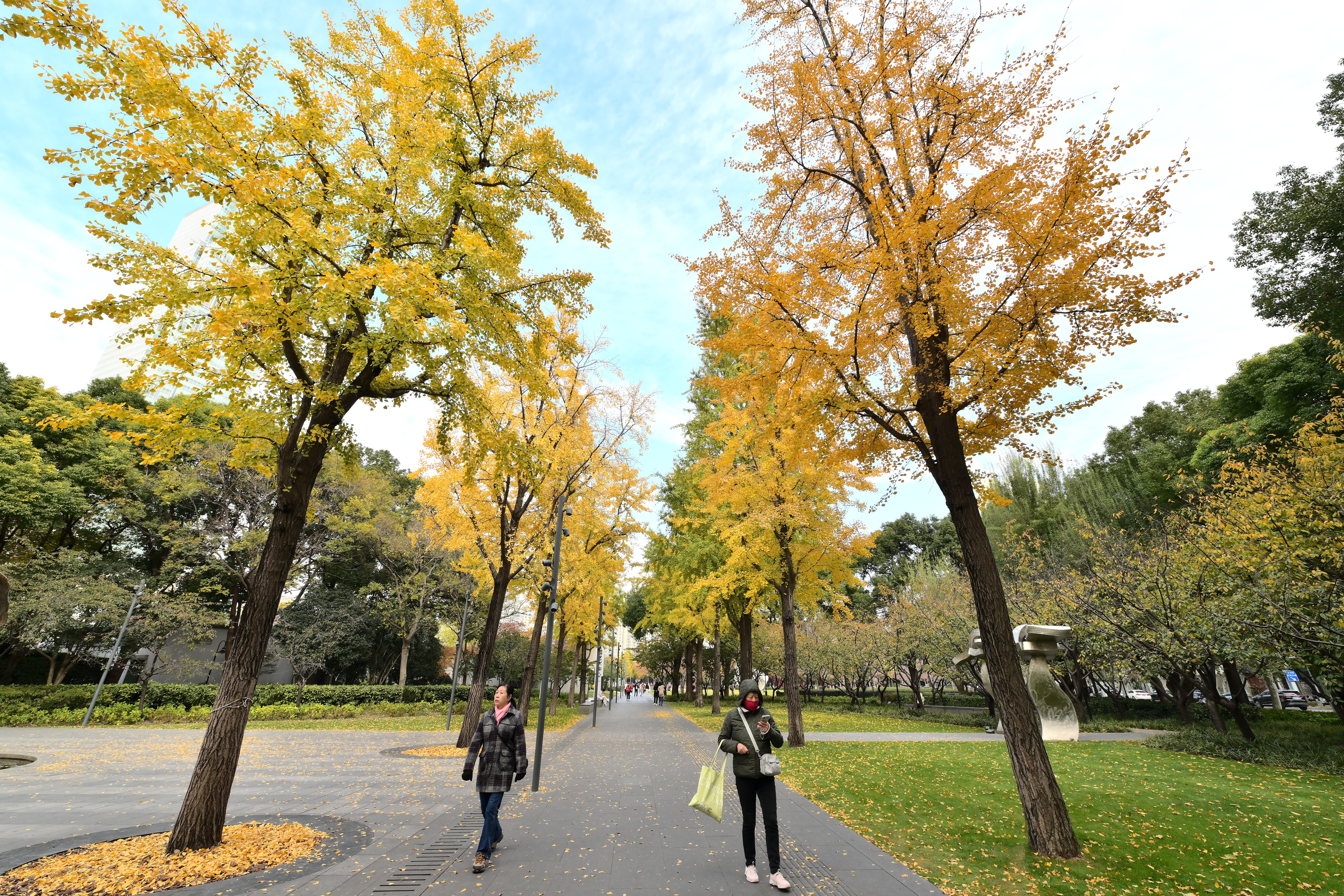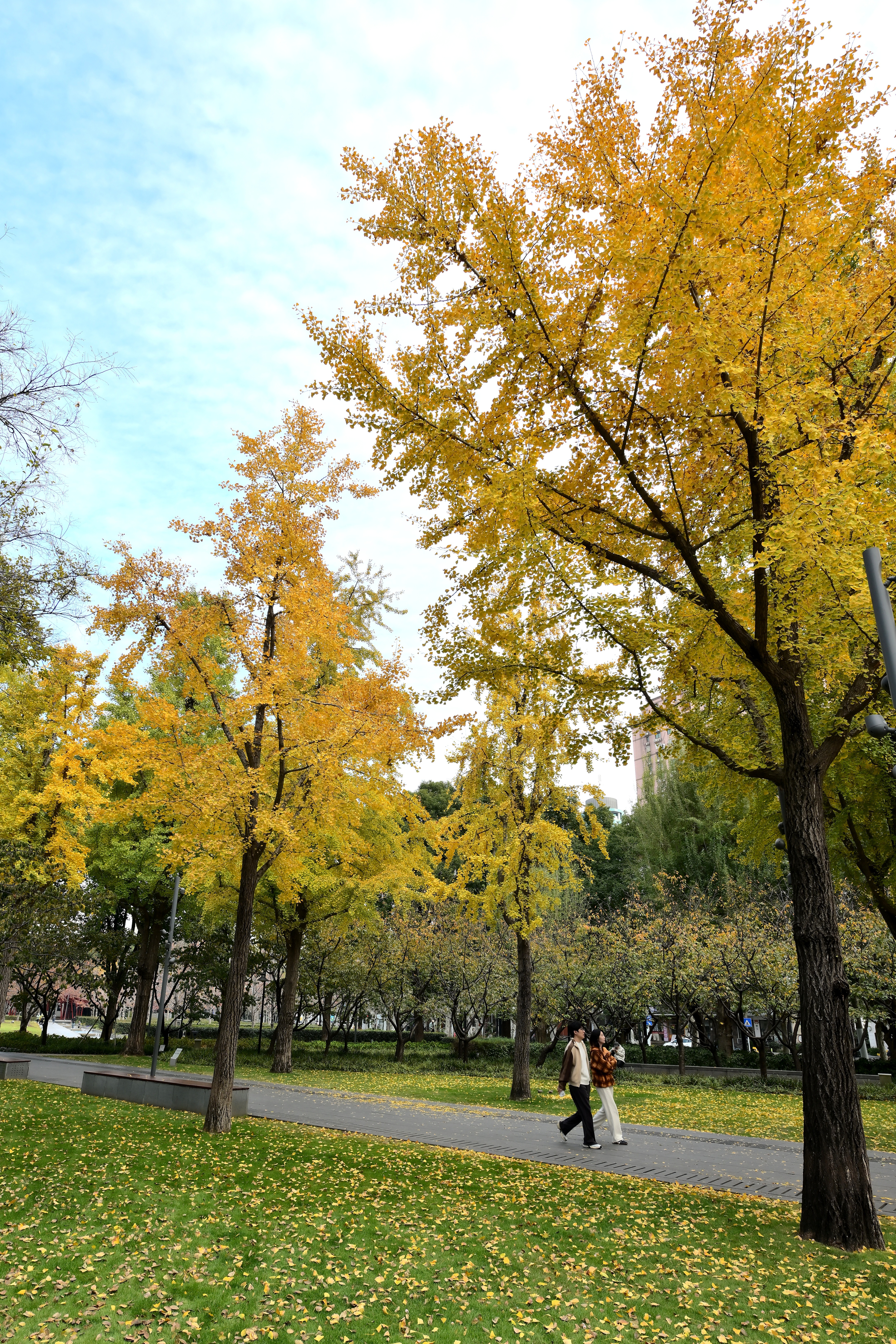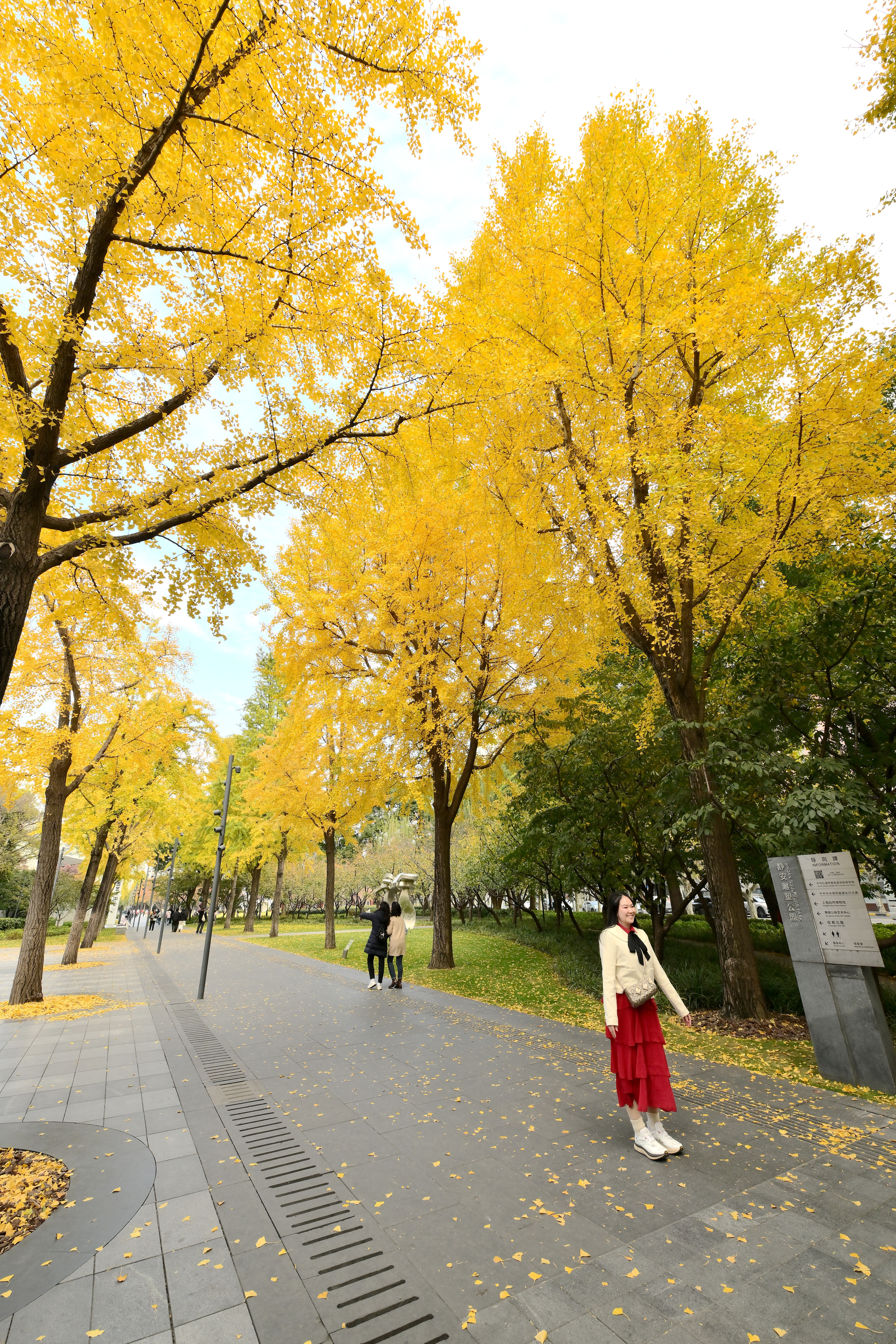 城市中心的呼吸之地。银杏列队而立,犹如披着金甲的卫士,守护着一方宁静。仰拍时,枝叶与蓝天相衬,勾勒出都市天际线的温柔边框;俯首时,落叶成毯,每一步都踩出簌簌的轻响,这是城市喧哗中意外的抒情曲。