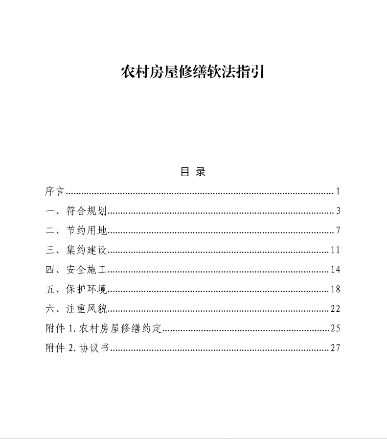 第十五条:提升农房建设品质。各地要健全完善农房建设地方标准和技术导则,积极推进“功能现代、结构安全、成本经济、绿色环保、风貌协调”的现代宜居农房建设,因地制宜促进新结构、新材料、新工艺和绿色低碳技术的广泛应用,加快农村改厕及水电气路信等配套设施建设,不断完善农房使用功能,满足村民现代生产生活需要。