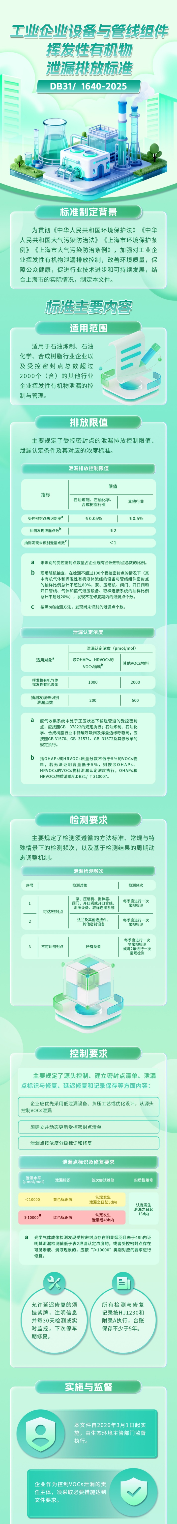点击阅读原文,查看《上海市生态环境局 上海市市场监督管理局关于发布〈工业企业设备与管线组件挥发性有机物泄漏排放标准〉〈大气污染物综合排放标准〉〈生活垃圾焚烧大气污染物排放标准〉为上海市地方污染物排放标准的公告》(沪环法〔2025〕174号)及相关附件
