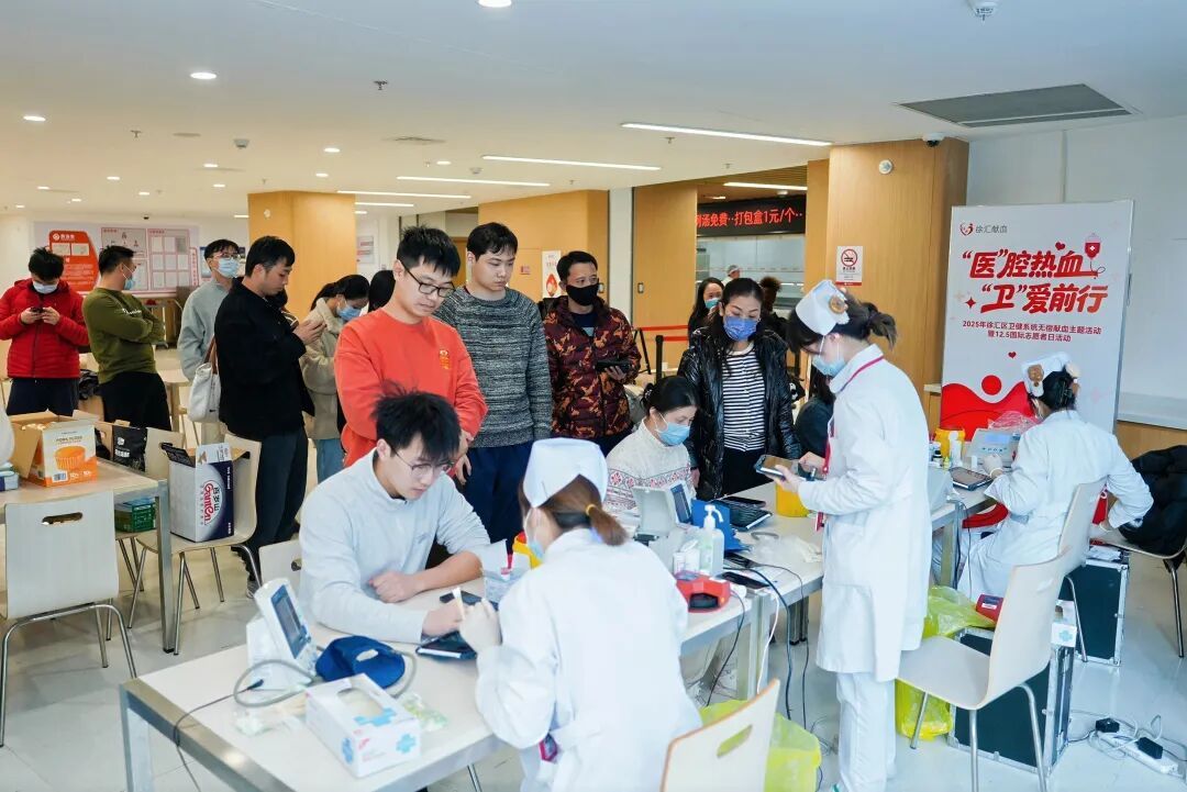 在繁忙的诊疗间隙,医务工作者将无偿献血视作另一种生命救治,用涓涓热血为临床用血需求提供直接有力的支持。活动现场温情涌动、秩序井然。在徐汇区血液管理办公室工作人员引导下,大家都踊跃参与,有条不紊地完成体检、初筛等流程,主动奉献爱心。