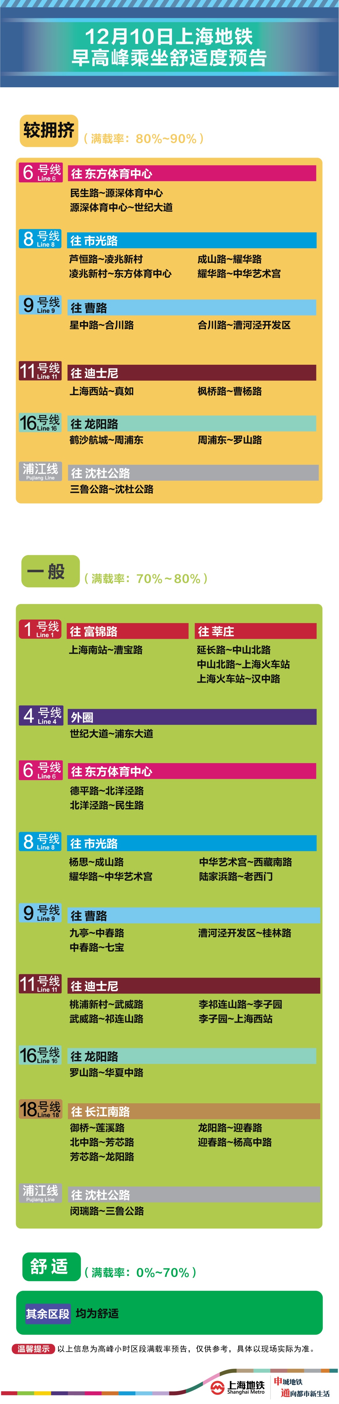 为提升上海地铁早高峰期间出行服务水平,提升乘客乘坐体验,上海地铁向乘客提供乘坐舒适度预告,方便乘客提