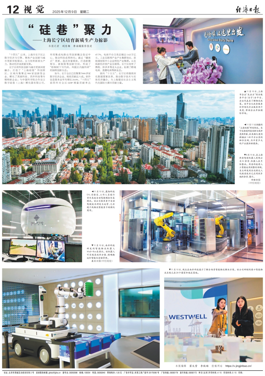 “十四五”以来,上海市长宁区以数字经济为引擎,聚焦产业创新与城市更新双轮驱动,全力培育新质生产力,推动经济高质量发展。今天(12月9日),《经济日报》以《“硅巷”聚力——上海长宁区培育新质生产力掠影》为题进行专版报道。