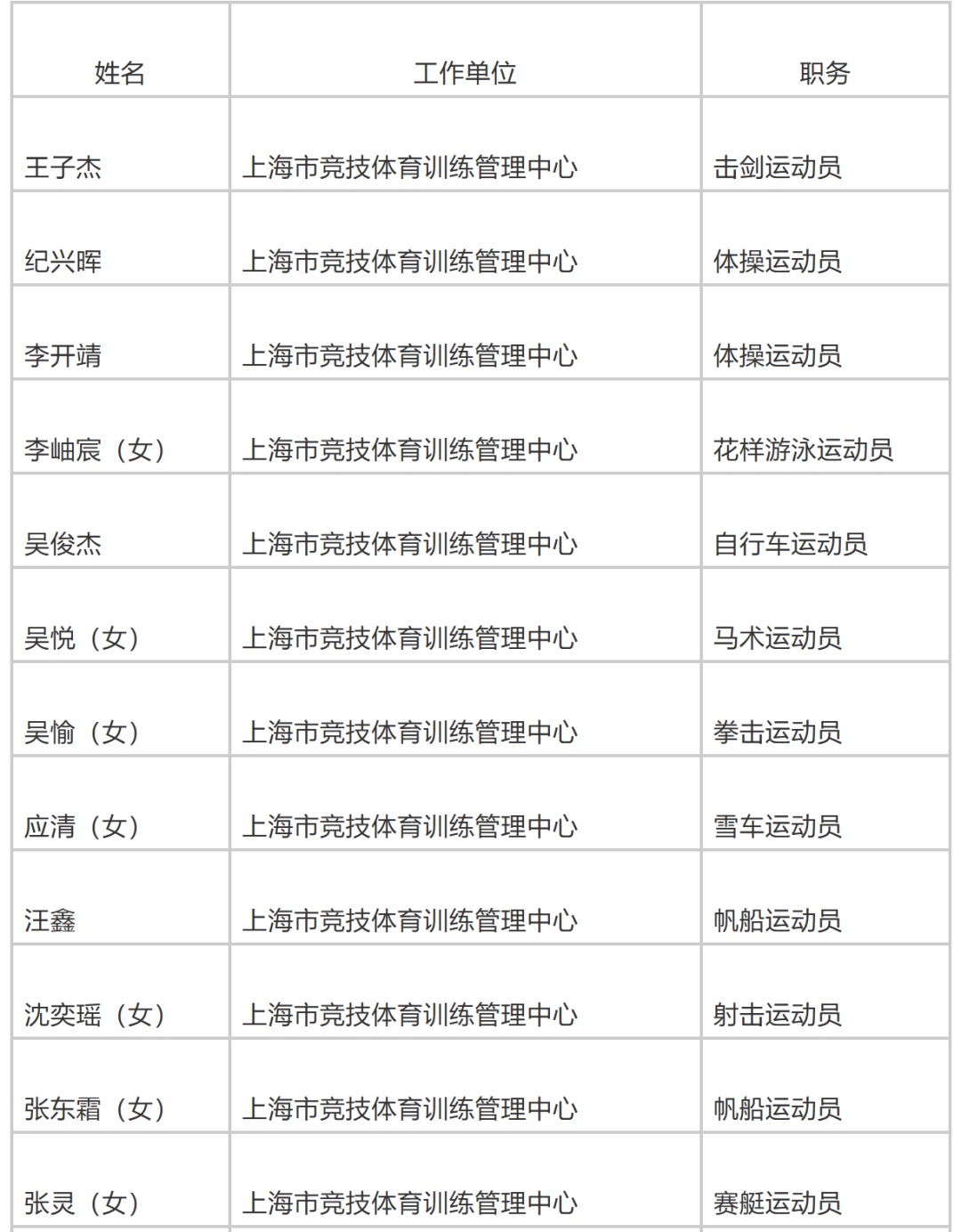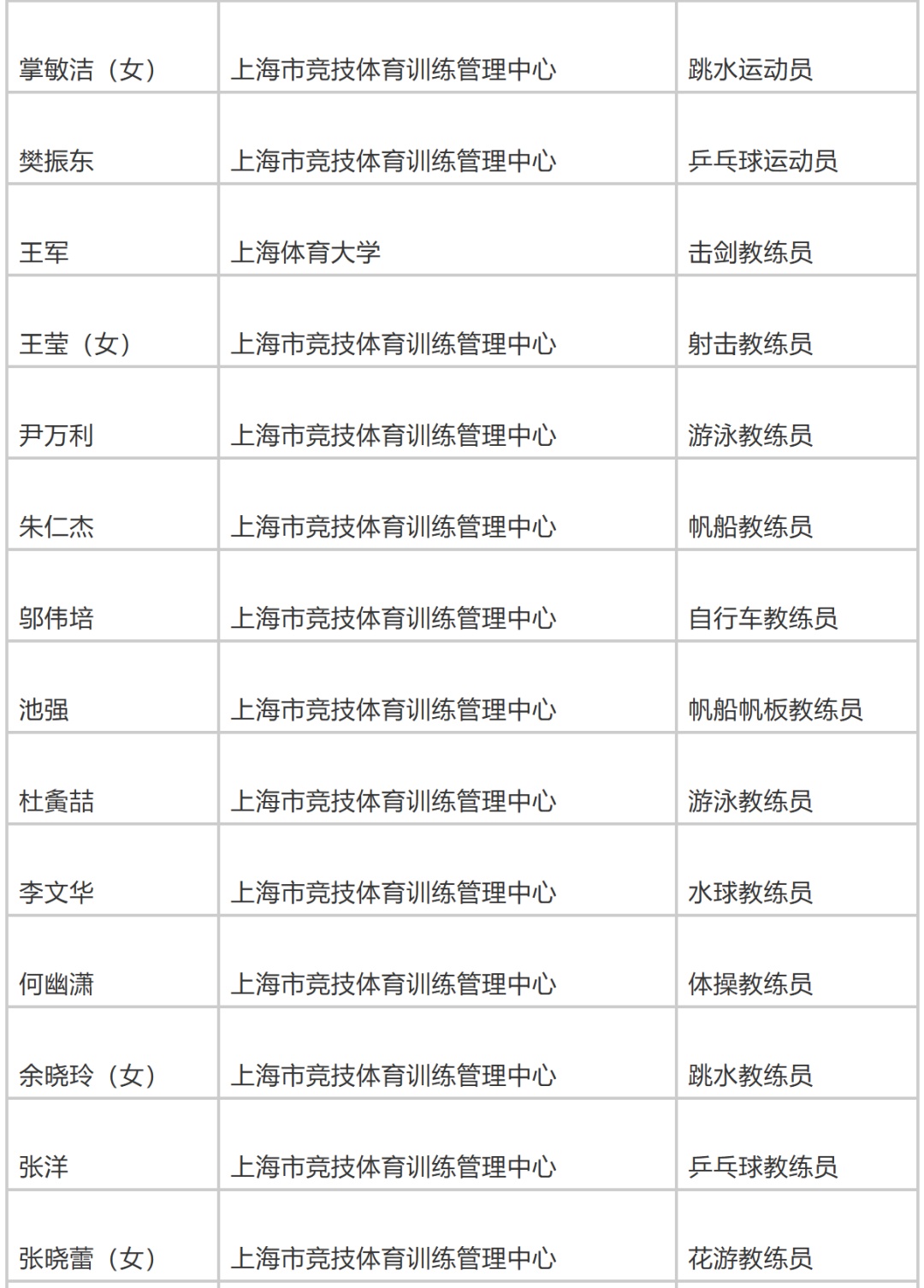 乒乓球运动员樊振东、跳水运动员陈芋汐、游泳运动员覃海洋、唐钱婷等知名运动员均位列其中,此外还包括一批教练员。