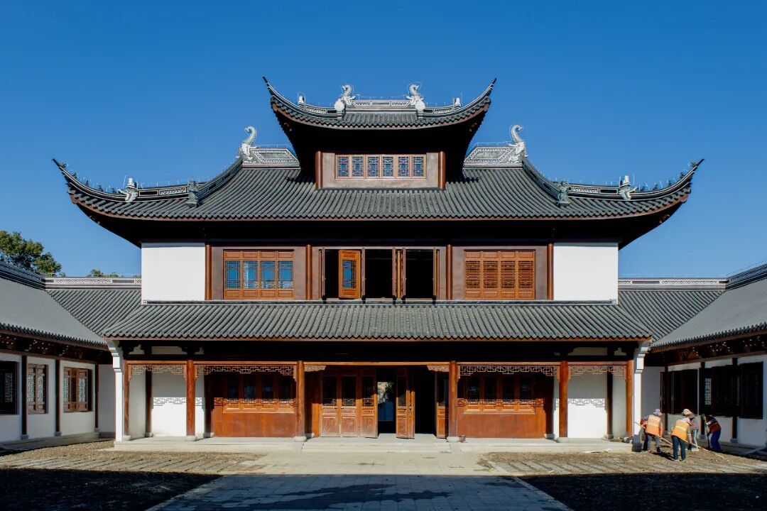 建筑外立面主要采用白墙、仿古木门窗、木檐装修以及小青瓦等材料,浓浓的江南建筑风格,拍照很出片!