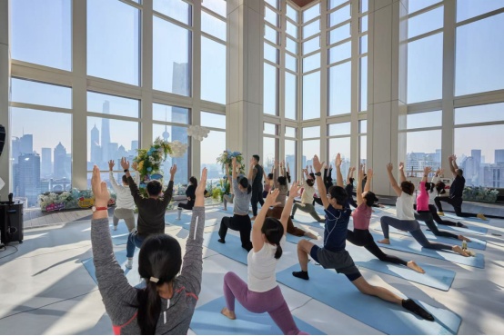 活动充分利用了项目自身的空间特色。在百米高空的挑高庭院中,“云端瑜伽”让参与者在都市之巅舒展身心,明星瑜伽教练陈先生感叹道:“一边做瑜伽一边欣赏浦江风景,这种独特体验是我多年教学中没见过的。”与此同时,下沉广场等公共空间也被创意转化为充满活力的“网球嘉年华”,将自然、艺术与运动有机融合,为日常办公生活注入全新体验。