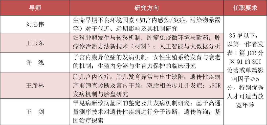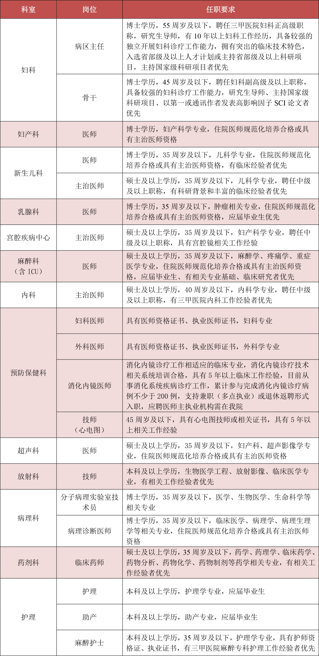2025年12月31日,妇科病区主任、妇科骨干、博士后岗位长期有效。