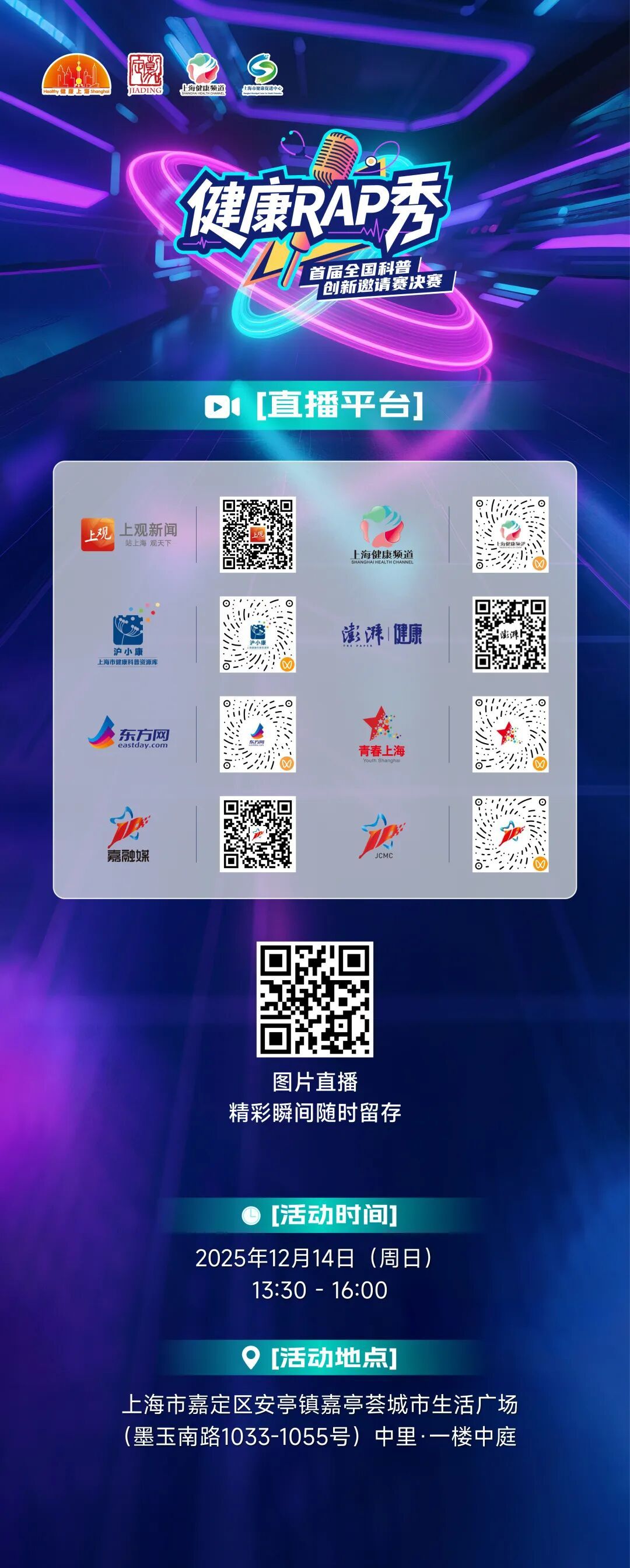12月14日,首届全国“健康Rap秀”科普创新邀请赛决赛即将在嘉定开唱!现场还有非遗集市、名家评委、线上直播……精彩不容错过!