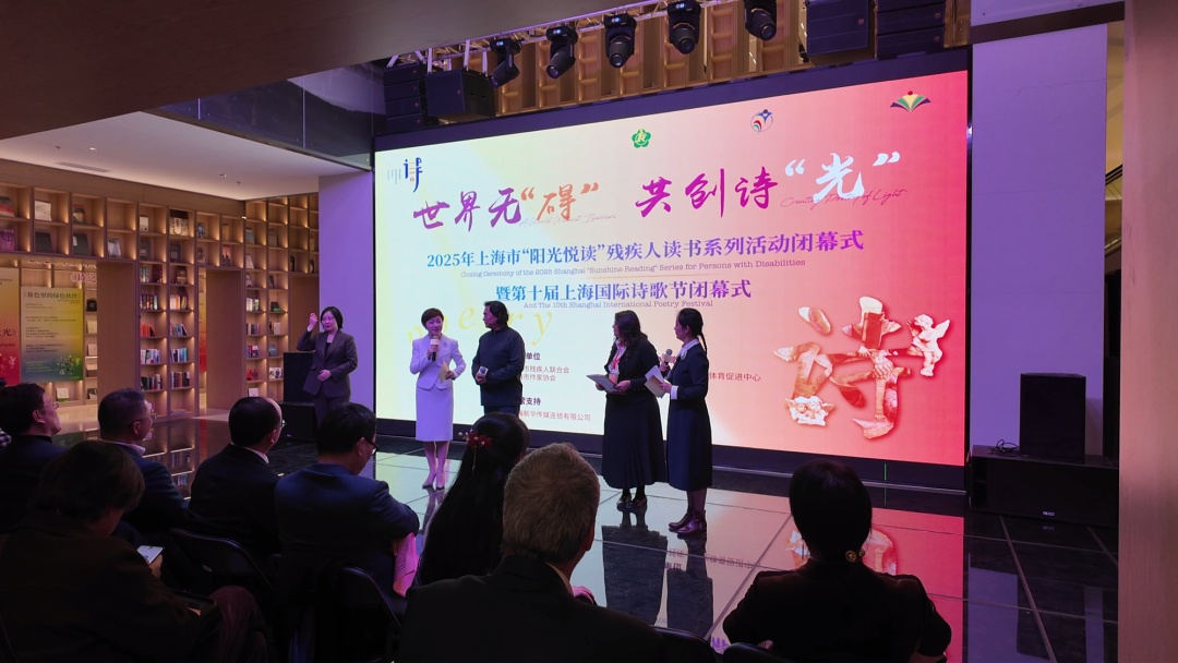 12月9日晚,在福州路上海书城内,诗意流淌、暖意融融。2025年上海市“阳光悦读”残疾人读书系列活动闭幕式暨第十届上海国际诗歌节闭幕式在此隆重举行。