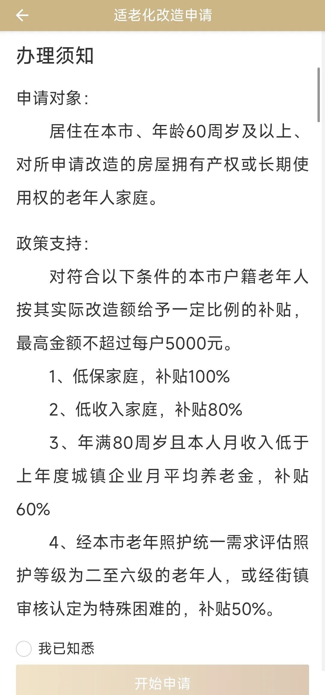 ✅补贴以三年为一个周期,符合条件的老年人在一个周期内可多次申请适老化改造并享受相应补贴标准,累计补贴金额不超过每户 5000 元。