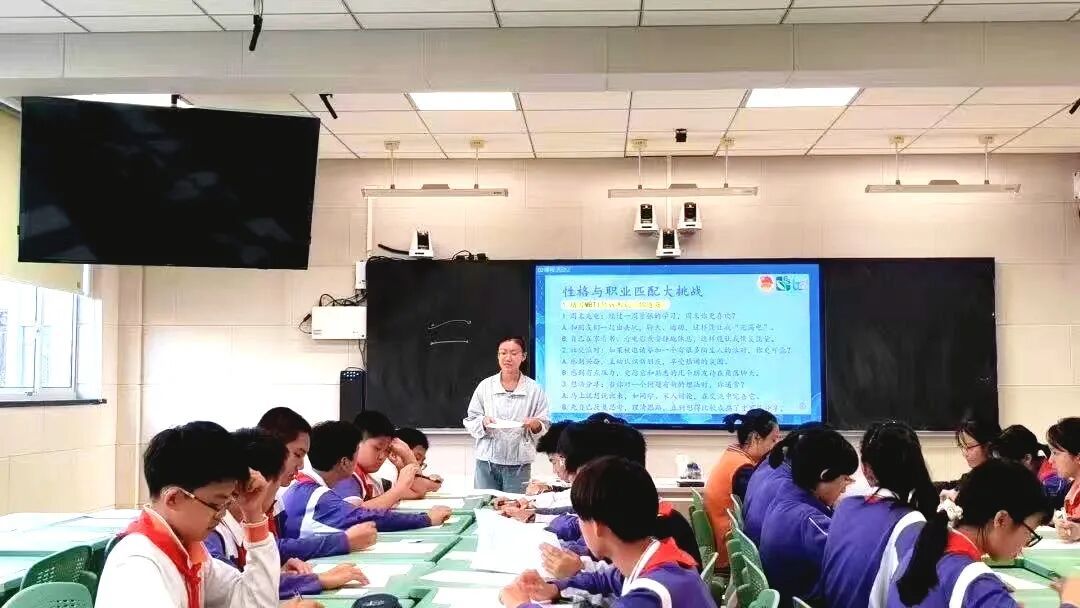 课堂上,一个简单却极具启发的“闭眼/睁眼连线”游戏,让学生直观体会到自我认知的偏差与可能性。随后,团队引导学生将性格特征转化为自己的“职业超能力”,并借助近期热映电影《疯狂动物城》中“未来由我创造”的成长性思维理念,引导孩子们突破自我标签、勇敢尝试更多可能。许多学生在课堂结束后表示,第一次感觉职业规划竟然和生活这么贴近。