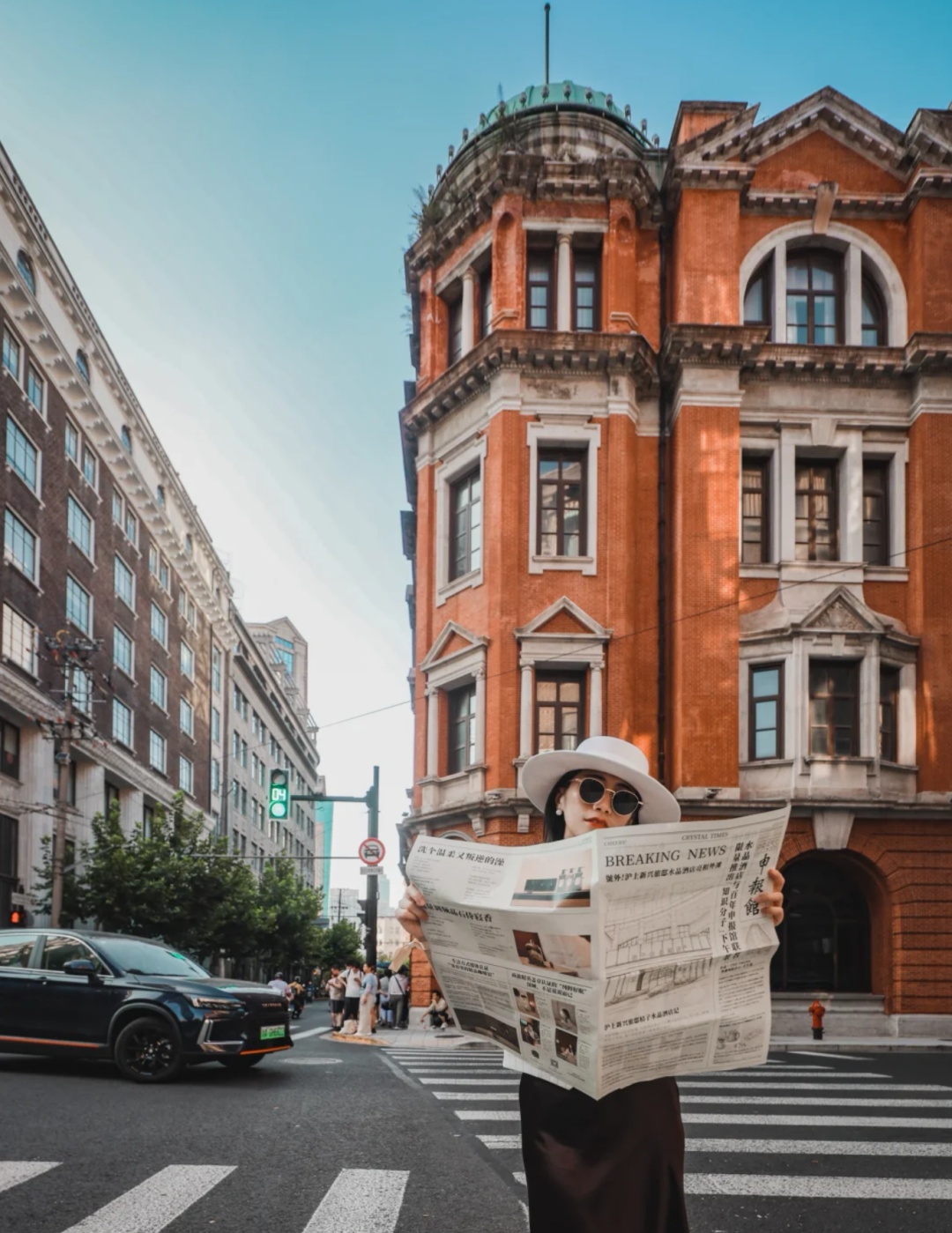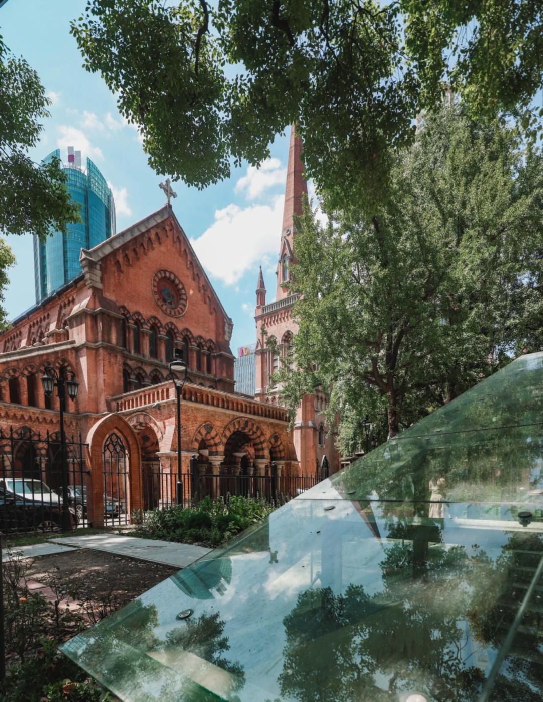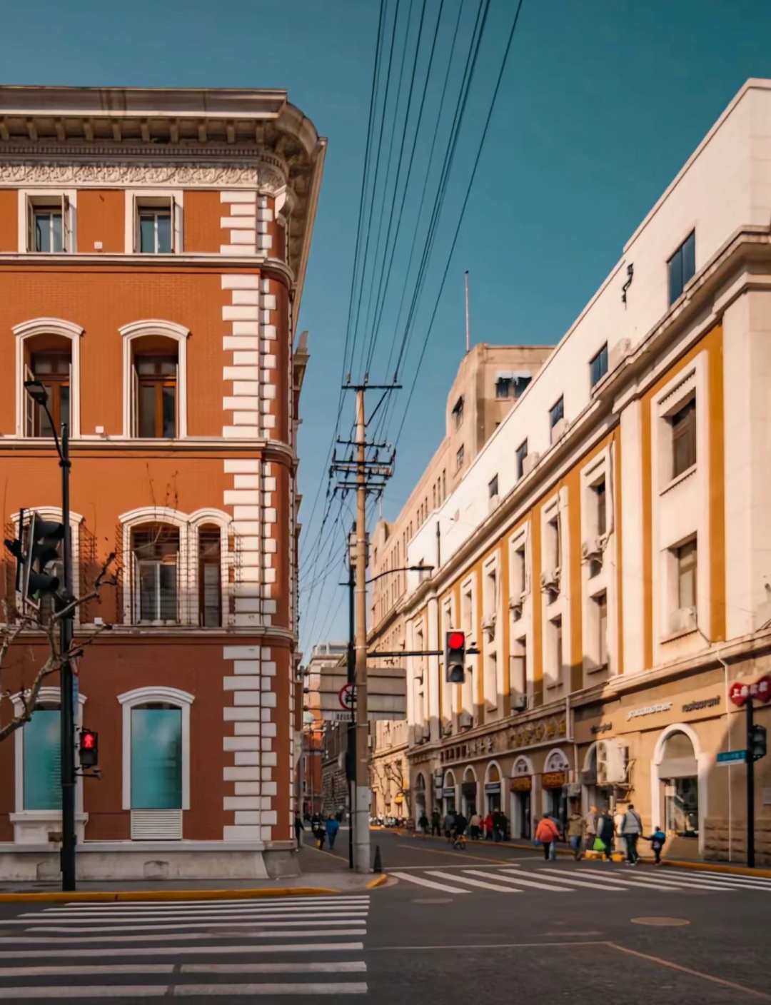 汉口路四川中路路口 红色欧式建筑,必拍角度