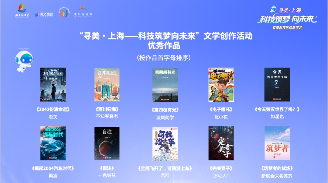 “寻美•上海——科技筑梦向未来”文学创作活动自8月发动以来,通过作家助手、起点中文网首页banner、微信公众号等多渠道进行宣传,总点击量超500万次,引发社会各界的广泛关注,共收到2600多部投稿作品,内容涉及现实、科幻、都市、悬疑、仙侠等多种题材,以网络文学作品的形式讲述科技改变生活的故事。活动还特别组织资深编辑、行业专家等成立评选委员会,共评选出10部代表性优秀文学作品。