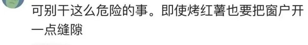 另外,还有网友提醒,在家烤红薯、烧烤、吃火锅等时,一定记得窗开条缝,注意安全。