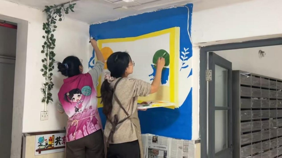 “小举措”带来“大反响”,“几个人”带动“一群人”。拥有绘画、设计特长的居民志愿者,主动请缨,利用业余时间,将原本斑驳的楼道墙面改造成了展示社区文化的涂鸦墙。在一片欢声笑语中,一隅公共空间实现了微更新、微美化,也自然而然形成了“楼组文化”。