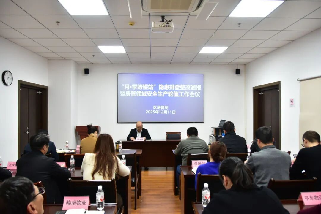 ! 安全生产 为系统总结2025年房管领域安全生产工作成效,研究部署2026年重点任务,近日,金山区房管局召开“月·季瞭望站”隐患排查整改通报工作会议。会议组织观看安全生产警示教育片,通报房管领域安全隐患排查整改情况,局党组成员、副局长汤永辉出席会议并讲话。 汤永辉强调,要以香港“11·26”特大火灾事故为镜鉴,切实筑牢安全防线,重点抓好三方面工作:一是提高政治站位,扛牢安全责任。牢记“人民至上、生命至上”理念,落实“党政同责、一岗双责”要求,杜绝“重业务轻安全”倾向,构建全链条监管体系,扭转“事后整改”被动局面。二是聚焦关键领域,靶向排查整治。实施“动态清零”“疏堵结合”“严管严控”等举措,建立隐患台账,明确整改时限与责任人,确保隐患见底清零。三是健全长效机制,凝聚共治合力。强化企业主体责任与行业监管责任,完善“红黑榜”考核、隐患报告奖励等制度;加强与消防、公安、应急管理等部门联动,开展联合执法;凝聚物业、居委会、业委会“三驾马车”合力,提升监管效能。 会上,局办公室通报房管重点领域隐患排查整改情况,部署下阶段安全管理工作。 区应急管理局相关负责人,区房管局相关部门科室负责人,以及物业企业代表、拆房企业代表、非居改建保租房企业代表、加梯企业代表参加本次会议。 来源:金山房管