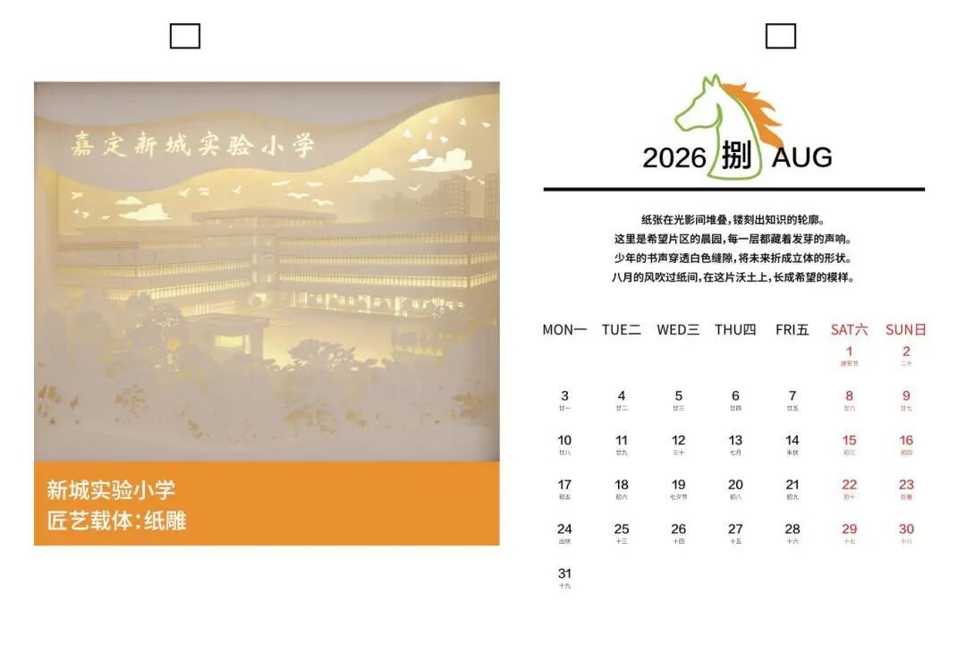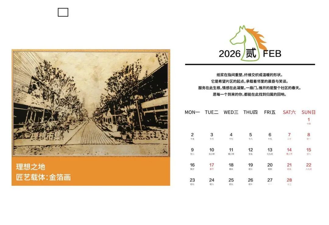 据了解,日历由马陆镇希望片区“合伙人”、匠心艺坊创始人沈海燕牵头,依托希望片区联动机制,携手片区“合伙人”上海馨悦社工服务中心,以“艺术共创”模式精心制作而成。团队历时数月,运用剪纸、蜡染、纸浆画、金箔画等12种非遗工艺,生动呈现希望片区内的12个核心地标,其中剪纸与蜡染作品出自沈海燕之手,其余作品则在上海馨悦社工服务中心协作下完成。