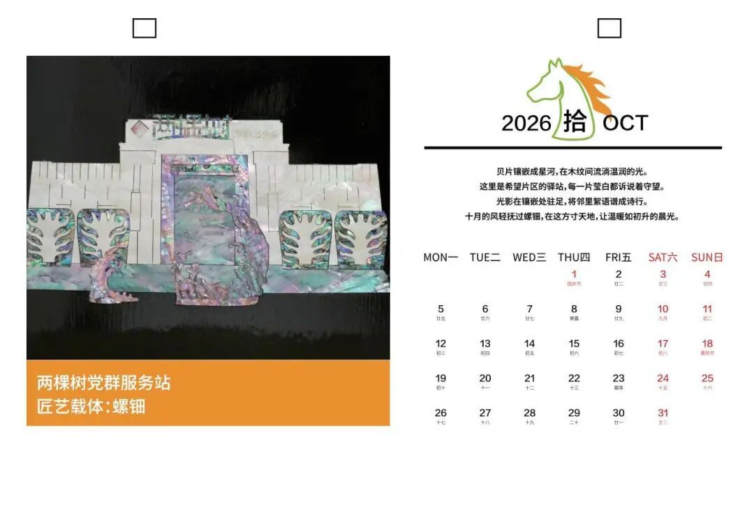 近日,在马陆镇希望片区各居委会服务大厅内,一本名为《希望十二境》的日历吸引了往来居民的注意。这本日历以12种非遗手艺为载体,生动“活化”了希望片区内核心地标,如今已成为不少居民口中的“社区网红”。