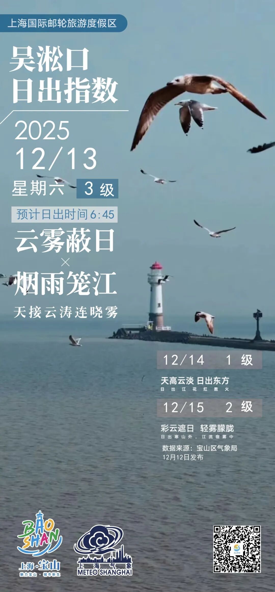 【吴淞口日出指数】12月13日3级 云雾蔽日×烟雨笼江