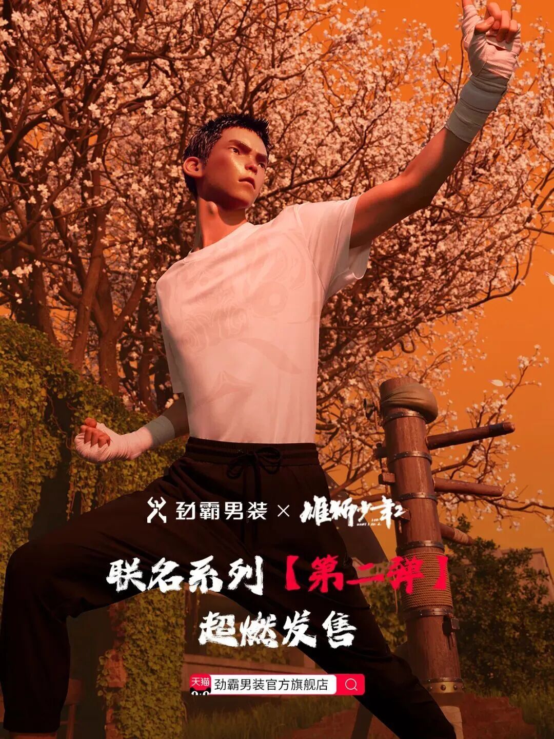在产品层面,除了新中式系列吸引年轻消费者,2024年,劲霸成为《雄狮少年2》男装行业独家合作伙伴,推出两季联名产品,将品牌精神与国漫文化深度绑定,通过小红书达人种草、流量推广,精准触达年轻消费群;在B站春晚期间,他创意打造“霸福叠满,带劲上场”话题,以谐音梗“霸福buff ”契合年轻用户的“玩梗文化”,实现线上破圈与线下终端的联动,拉动产品销量。