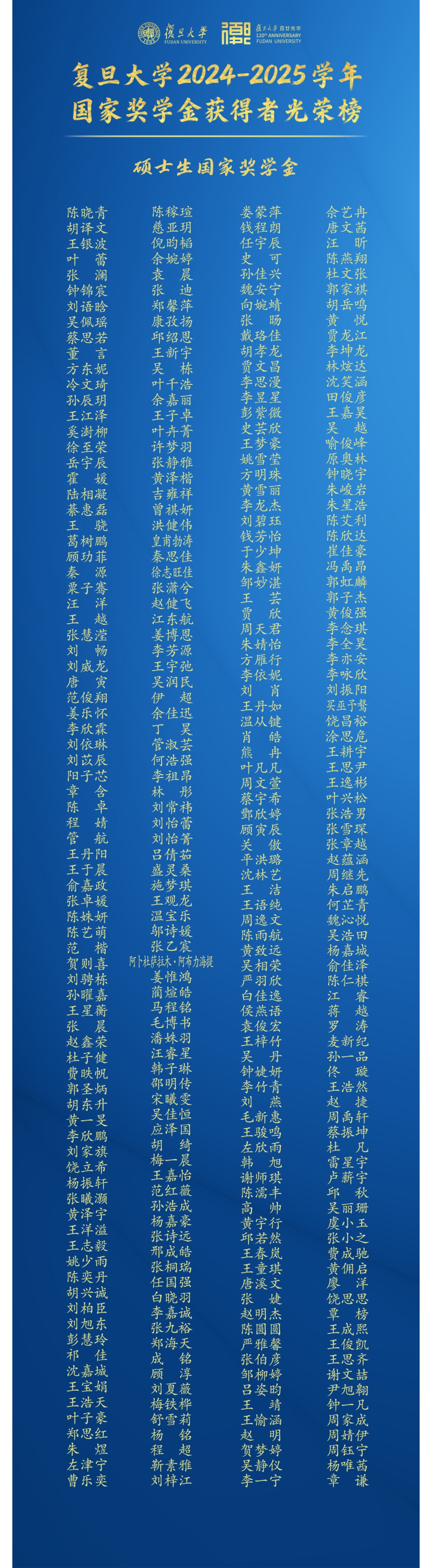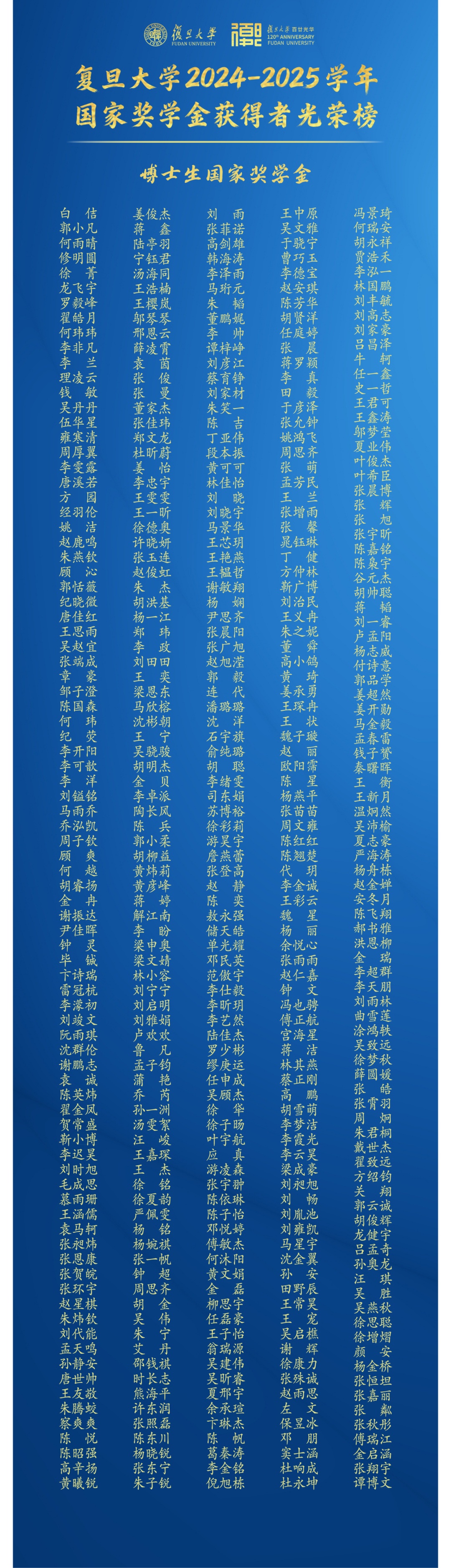 副校长、奖(助)学金评审委员会副主任周磊宣读复旦大学2024-2025学年奖学金获奖学生名单。