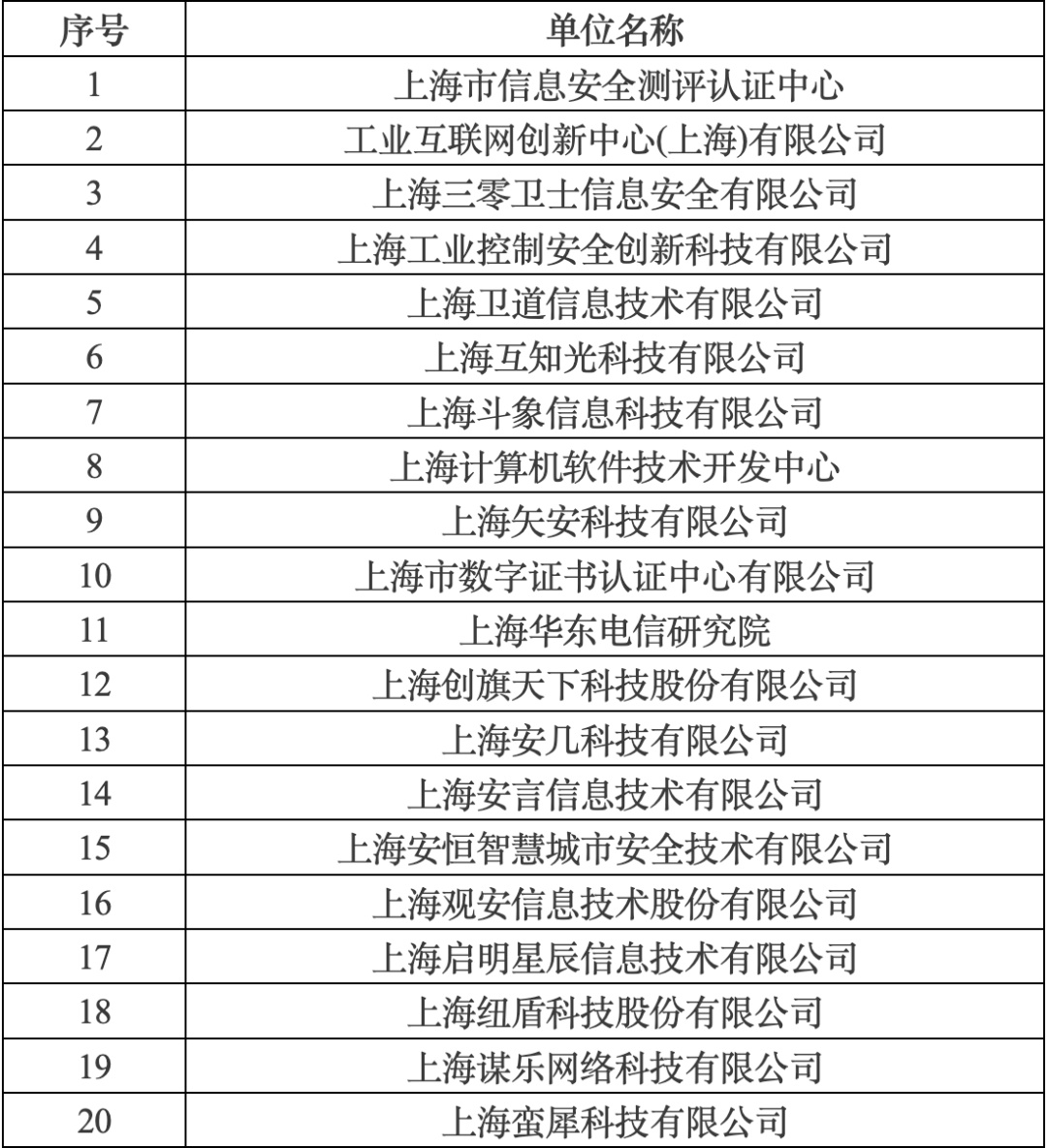 上海市经济和信息化委员会关于公布2025年网络和数据安全支撑单位名单的通知
