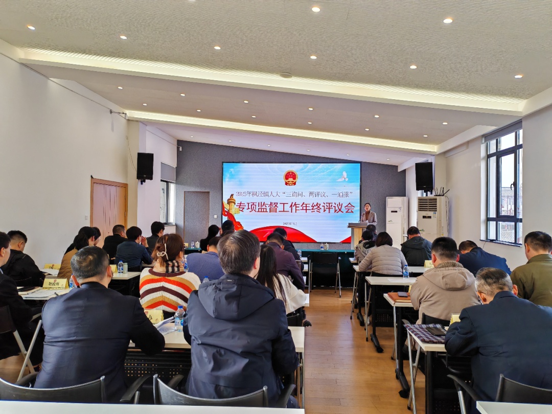 找到问题只是起点,推动解决才是关键。“三二一”专项监督通过“两评议”机制打破“监督一阵风、整改走过场”的困境,让政府部门始终绷紧责任弦。这套评议机制贯穿全年、层层递进:年初,镇人代会投票产生当年度被评议单位(部门),随后,镇人大召开动员部署及培训会,明确评议标准与重点;年中,4个评议小组开展首轮“问效评议”——不仅看部门工作推进情况,更看前期“询问”中发现的问题是否有初步应对,从政策执行力度、班子履职能力、特色亮点工作等维度进行综合打分,当场指出不足、明确整改方向,让部门红脸出汗的同时,也清晰掌握改进路径。