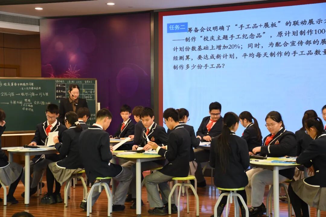 数学教师罗嘉尧的课堂,正围绕学校30周年校庆展开。“展板要在校庆前顺利完成,只能在5天内完成,现有三种方案可供选择……”话音刚落,学生们已经开始埋头计算。这节“校庆筹备中的数学问题:一元二次方程的应用”,将数学知识与真实的校庆筹备工作无缝衔接。