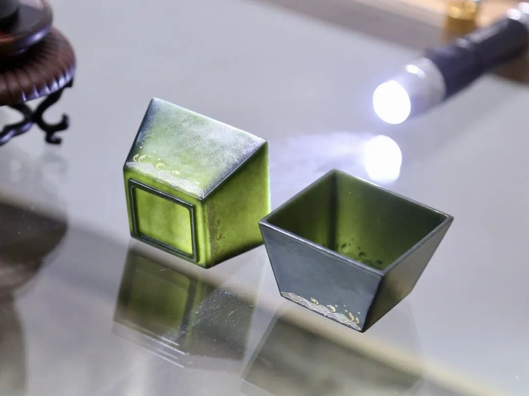 其中,双耳平安瓶器壁极薄,瓶身的雕刻线条细腻优雅,展现了传统中国工艺的精致与灵动;而红楼绿玉斗则简洁典雅,四方形状象征着包容与开放,蕴含着深远的文化寓意。