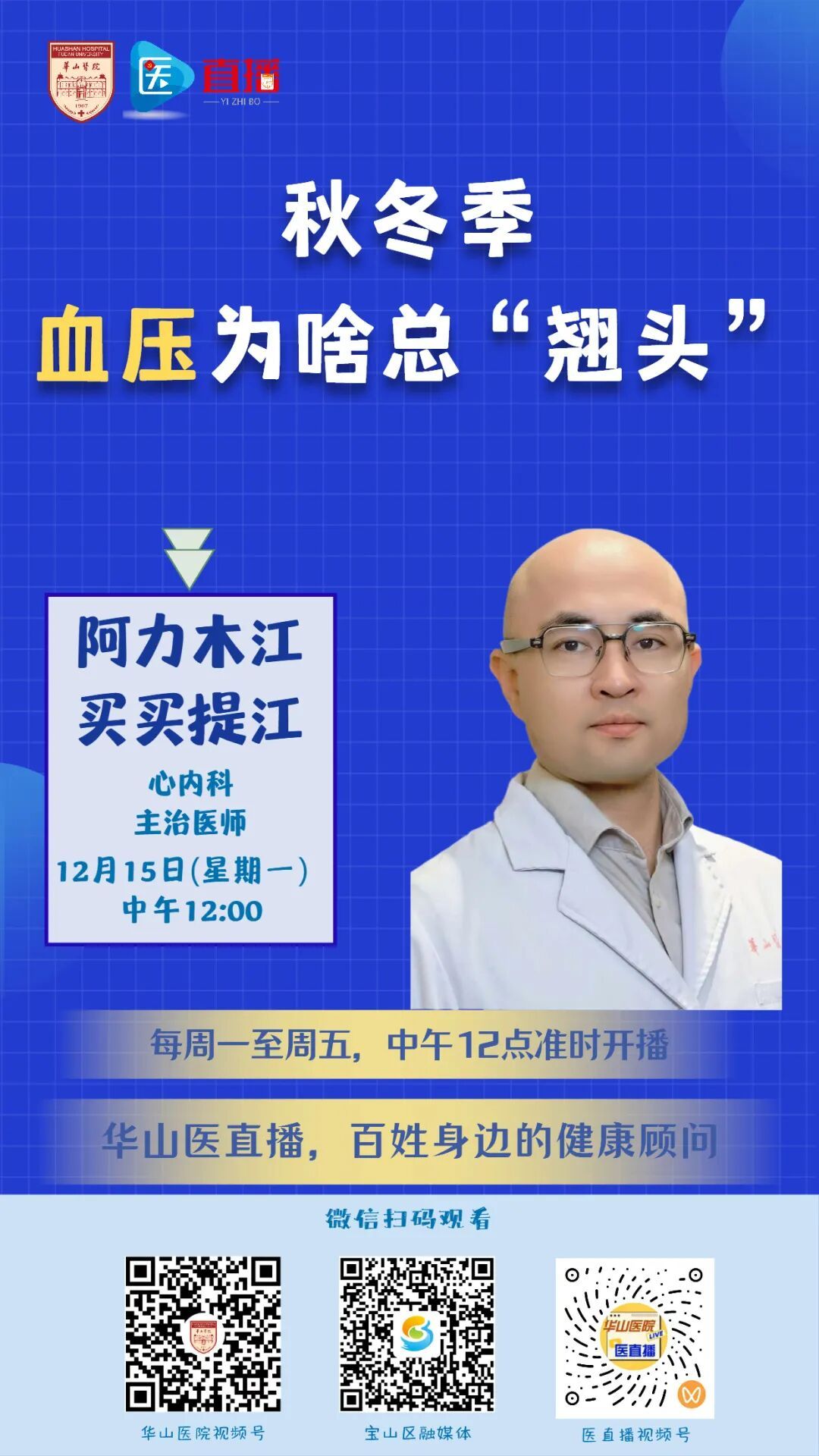 天一冷就头晕脑胀,测血压发现数字蹭蹭往上跑;早上起床猛了,眼前发黑差点摔倒……这很可能是秋冬季血压在悄悄“翘头”!血压会随季节变化,秋冬寒冷血管收缩,更容易引发血压升高,增加心脑血管风险。本期医直播,复旦大学附属华山医院心内科主治医师阿力木江·买买提江,为您揭秘秋冬血压波动的原因,并送上居家调理、科学监测和规范用药的实用“稳压”妙招。