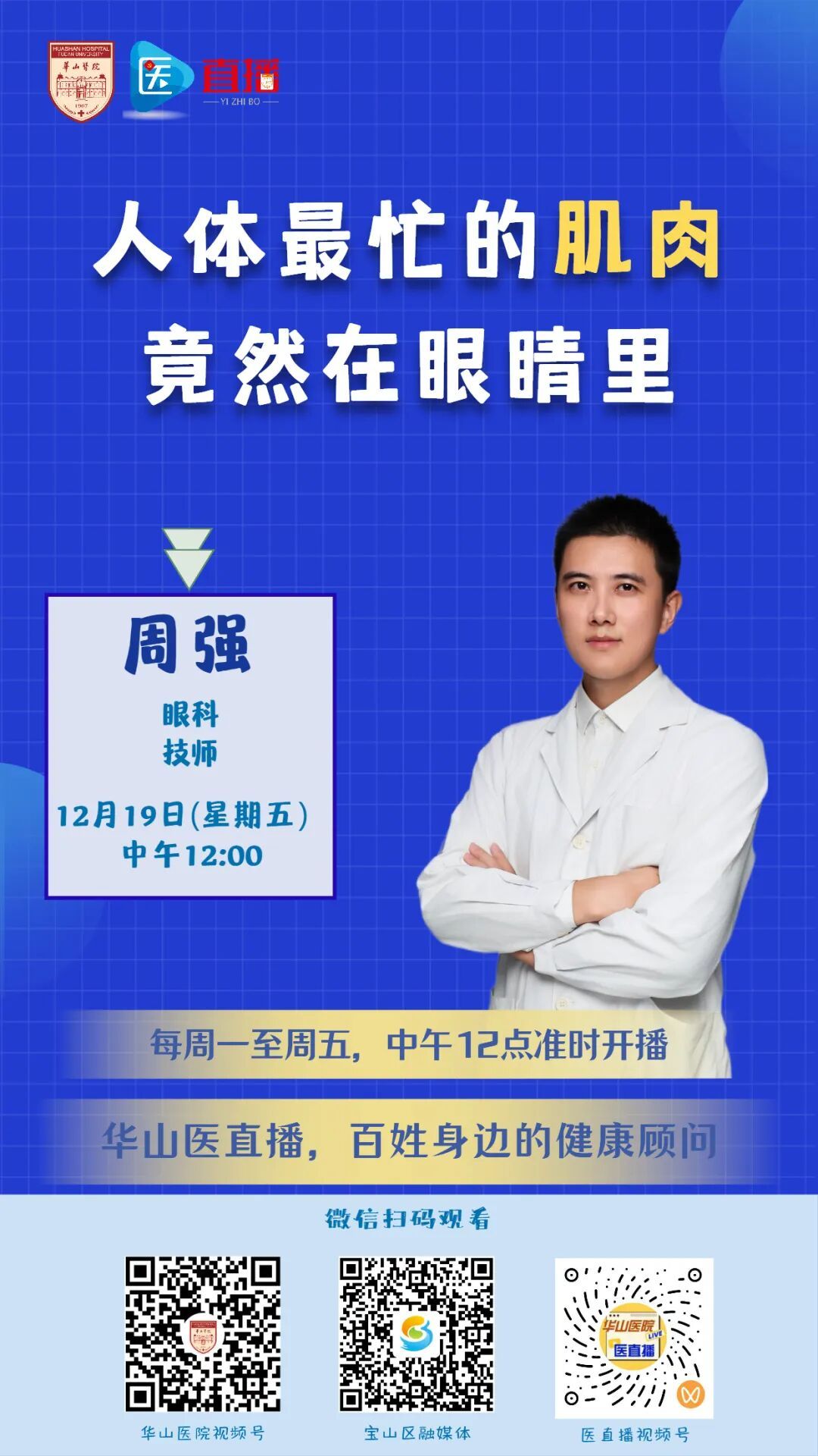 你知道吗?我们全身最忙的肌肉,不是支撑走路的腿部肌肉,也不是灵活抓手的手部肌肉,而是藏在眼内。本期医直播,复旦大学附属华山医院眼科技师周强,来聊聊人体最忙的肌肉。
