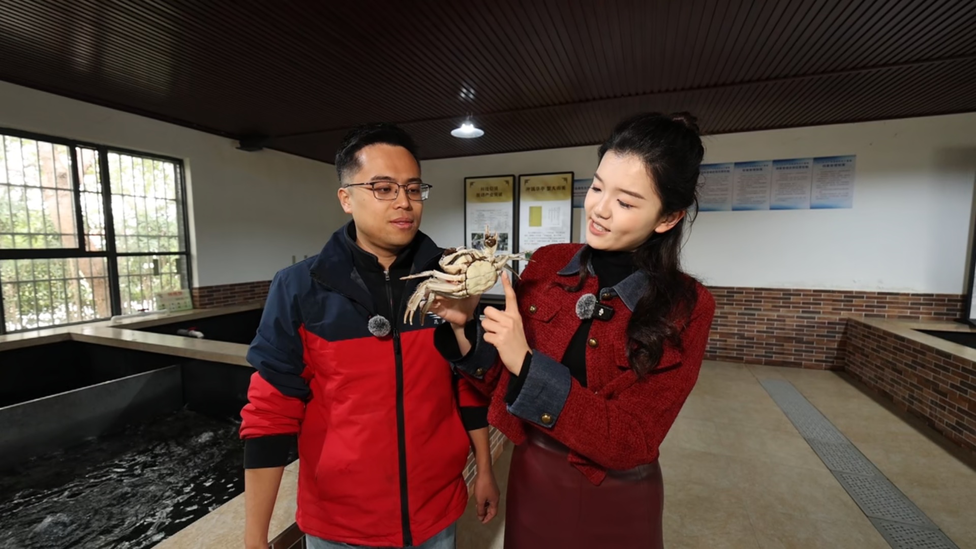 作为松江首家无人机养蟹基地,荡湾里蟹庄位于黄浦江上游水源、万亩良田环绕,养出的大闸蟹连年拿奖。上海昆秀水产专业合作社理事人许翔带孙嘉艺来到蟹塘观看无人机播撒饲料;在售蟹区,许翔展示昆泖大闸蟹的专属认证——每一只大闸蟹背后都有专属激光身份证,买到的客人可以验证真伪。此外,荡湾里蟹庄还提供垂钓、露营、团建等服务,能够一站式体验江南田园的浪漫。