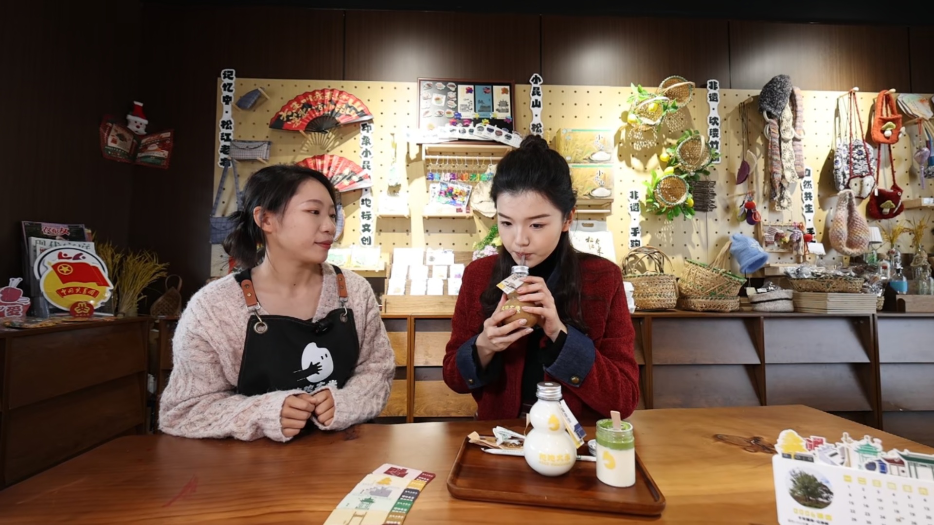 逛完大米加工厂,孙嘉艺沿着永夏公路来到“抱抱大米”。在这里,松江大米被“玩”出了新花样。店员端上的米咖颇具特色,浓郁的米香和咖啡的醇厚完美融合在一起。“店内不仅有米咖,还有米浆可供选择,都是选用松江大米制作而成。”“抱抱大米”主理人陈陈介绍。此外,店内还有手作体验和文创产品,希望游客在来村里坐一坐的同时,还能带走一份独特的乡土记忆。