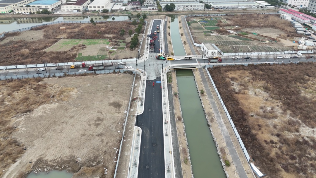 据了解,该新建道路等级为城市支路,采用双向两车道设计,是完善上海湾区科创城路网布局的重要组成部分,通车后将有效促进区域的互联互通,进一步改善周边市民的出行环境。