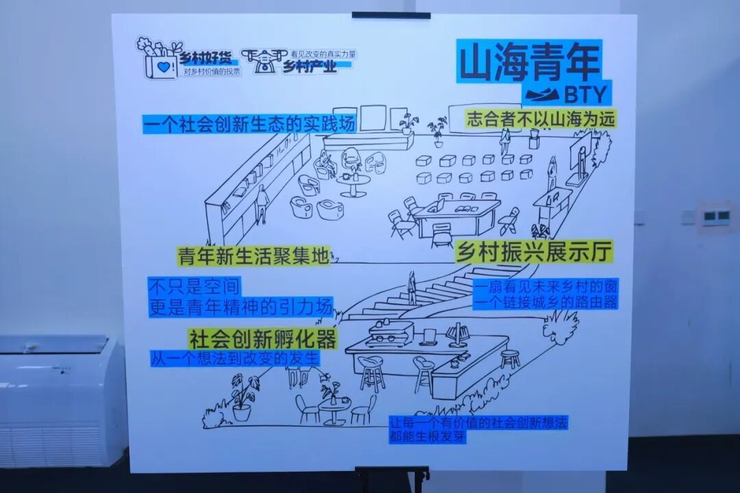“青年新生活聚集地”包括山海客厅、手作工坊、主理人计划,营造链接本地风物与都市潮流的社交风味场、活化乡村非遗与传统工艺的沉浸式美学空间、赋能青年KOL打造主理人驱动的多元社群生态。“乡村振兴展示厅”包括数字策展、山海好物体验区、结构洞地图,通过数字艺术与VR技术展示乡村振兴标杆案例,并精准匹配青年技能与乡村需求。“社会创新孵化器”将开展“山海创变客计划”孵化项目,聚焦乡村振兴、可持续发展等领域的早期项目,并设立“山海影响力投资基金”对项目进行投资。