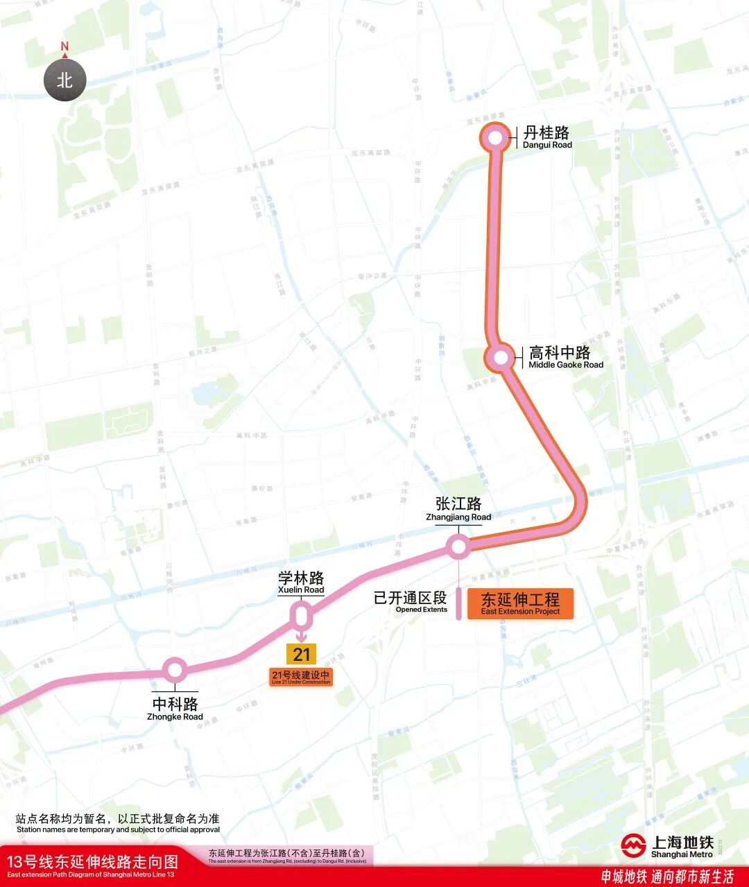 轨道交通13号线东延伸工程为上海市重大建设项目,线路起于运营地铁13号线张江路站东端、止于丹桂路上海集成电路设计产业园。该项目全线里程4.52千米,主体工程为2井2站3区间,即张江路站新增盾构工作井、王家浜中间风井、高科中路站、丹桂路站及其盾构隧道区间与4座联络通道,全部采用地下敷设。